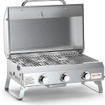Parrilla de gas de mesa de 3 quemadores, parrilla de propano portátil de acero inoxidable con patas plegables para patio al aire libre, campamento, portón trasero, viaje en caravana