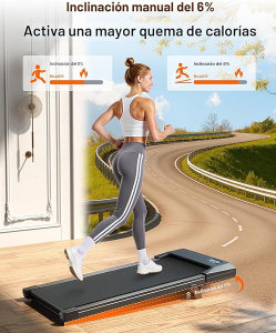 Caminadora Alfombra Rodante con Inclinación Manual del 6%, Alfombra Rodante para Debajo del Escritorio para el Hogar y la Oficina, con Aplicación y Control Remoto, Motor Silencioso de 2.5HP
