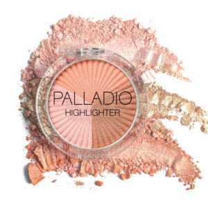 Palladio Sunkissed Resaltador, tonos radiantes que esculpe, define y destaca en una aplicación suave cremosa (Sunset)