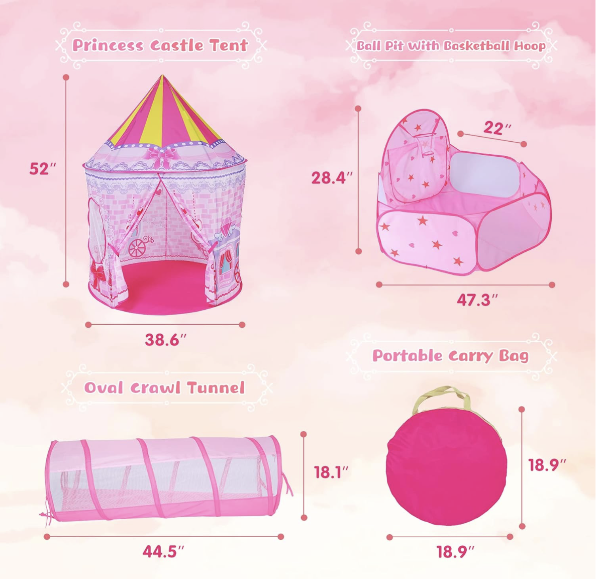 - El mejor regalo para niñas: Este juego de carpa de princesa sería un regalo perfecto de cumpleaños, Navidad o simplemente una sorpresa para tus hijos. Los mejores juguetes para niños pequeños para fiestas, almuerzos campestres, parques, carnavales o en casa. Recomendamos de 300 a 500 pelotas ***Las pelotas de la piscina no están incluidas***