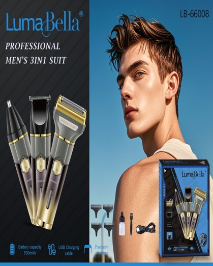 La Luma Bella LB-66008 es una herramienta de belleza 3 en 1 que combina afeitadora, recortadora y perfiladora de cejas en un solo dispositivo elegante, compacto y eficiente.