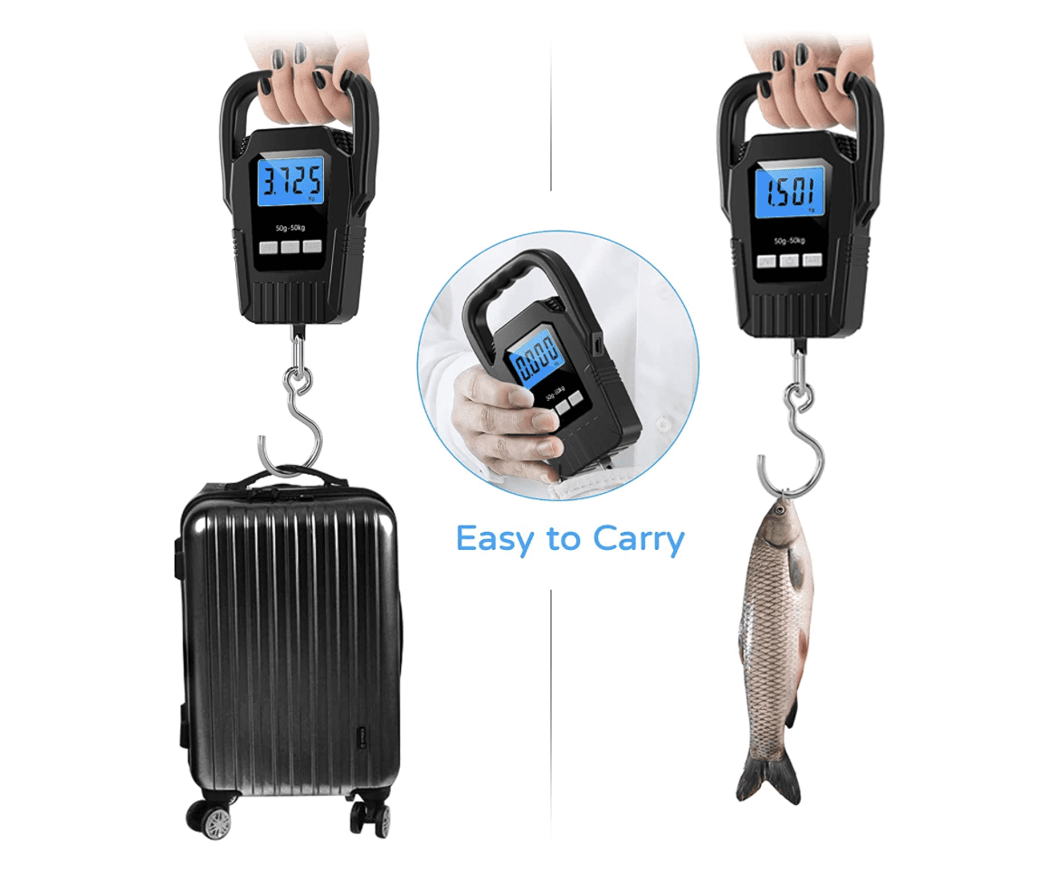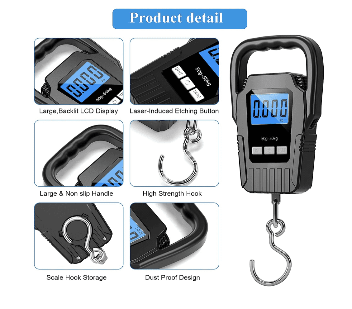 - Báscula de equipaje con gancho: hecha de acero inoxidable de alta resistencia de alta calidad, el gancho grande y duradero oculto en la ranura trasera es conveniente para que puedas enganchar y sacar de la boca de pescado, equipaje y todo lo demás.