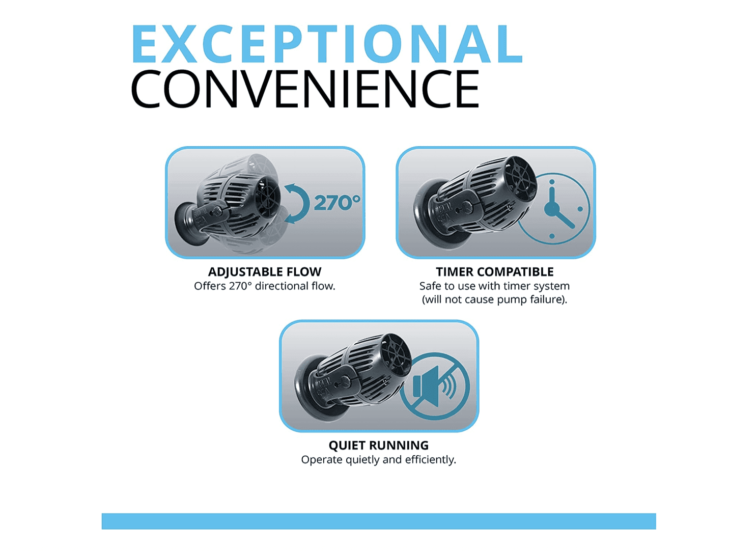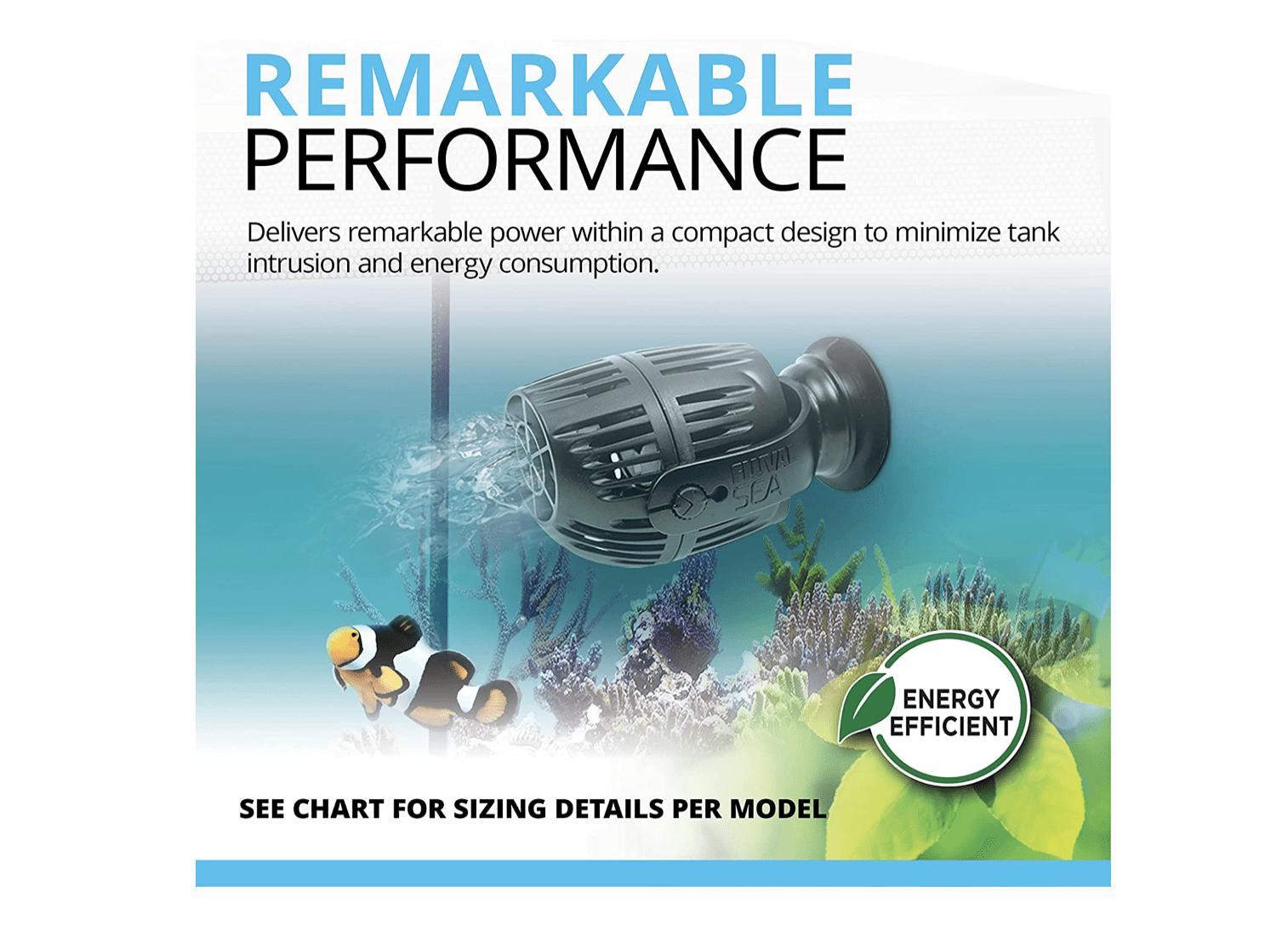 - Bomba de circulación de eficiencia energética, diseñada y fabricada en Europa para uso en acuarios de agua dulce y salada de hasta 25 galones