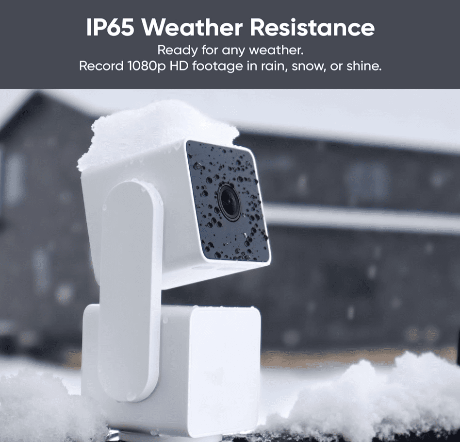 - Interior/exterior: WYZE Cam Pan v3 es una cámara de video con cable con una clasificación IP65, por lo que puedes instalarla con confianza y rastrear la acción, ya sea fuera bajo la lluvia o dentro de la guardería (el uso en exteriores requiere el adaptador de corriente WYZE Outdoor v2, se vende por separado). Temperatura de funcionamiento: -4.0 °F – 122.0 °F (-4°F – 122°F). Wi-Fi: 802.11 b/g/n, 2.4 GHz (5 GHz Wi-Fi no compatible).