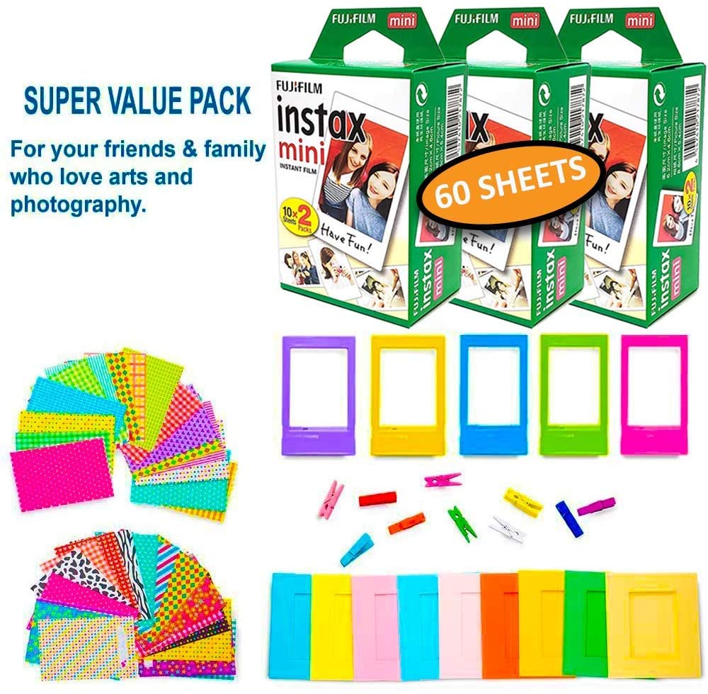 - Simplemente añade el momento: no dejes que otro momento se escape. Este paquete de accesorios y cámara Fuji de estilo Polaroid de Deals Number One está equipado con todo lo que necesitas para romper y saborear cada minuto memorable, incluyendo: una cámara instantánea Fujifilm Instax Mini 11, 3 paquetes de 20 películas instantáneas (60 hojas), funda de cámara con correa ajustable, álbum de 64 fotos, lente selfie, 4 filtros de colores, 10 marcos para colgar, 10 clips y cuerda, 60 marcos de pegatinas, 5 marcos de plástico -Hasta marcos y más