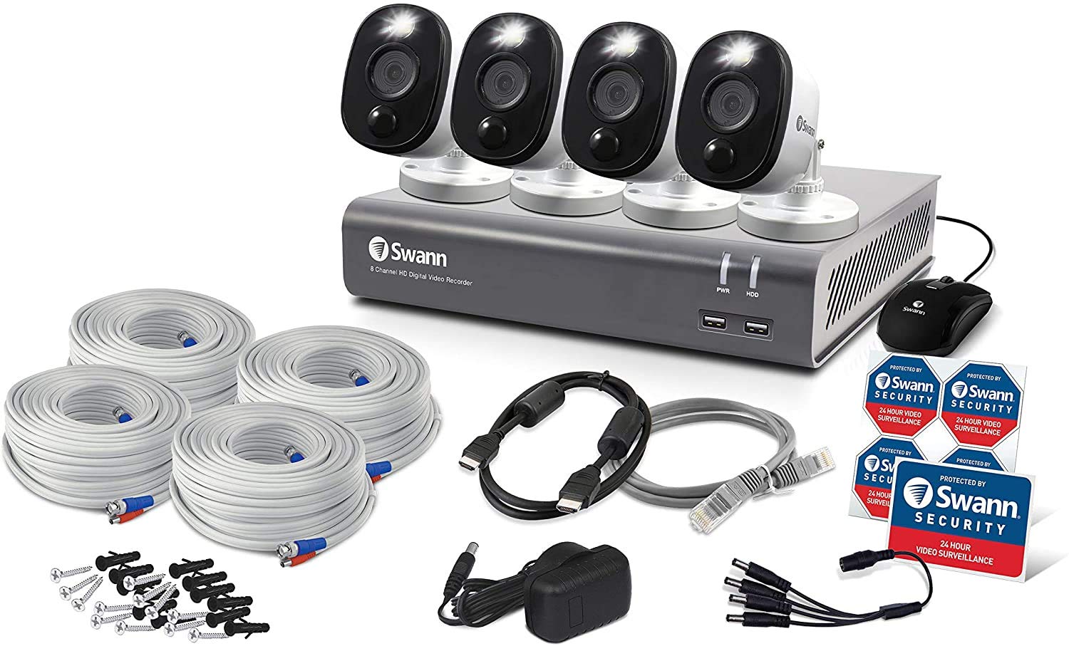 - TRUE DETECT HEAT & MOTION SENSING: This professional-quality DVR security system detects moving warm objects, like people and cars, triggering recording and push notifications so you can act immediately to prevent unwanted activity. With reliable notifications and fewer false triggers, you’ll save time and stress. With Swann’s Smart Search technology, you can select a specific area of the image to search for movement within recordings.