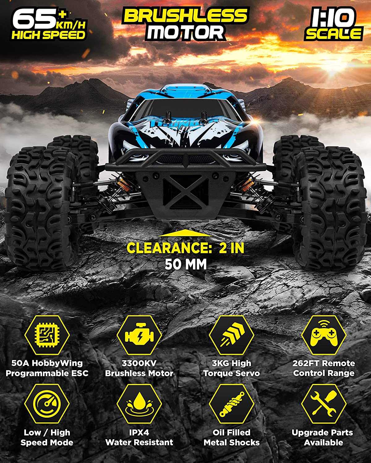 Carro Control RC 1:10 Scale Brushless RC Cars 65+ km/h Speed – Boys Remote Control Car 4×4 Off Road Monster Truck Electric – All Terrain Waterproof Toys for Kids and Adults -2 Body Shells + Connector for 30+ Mins Play