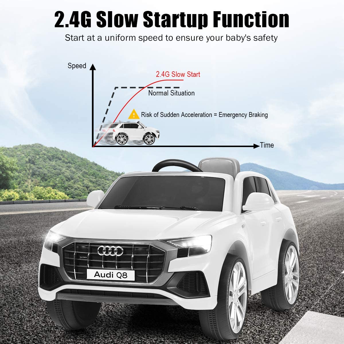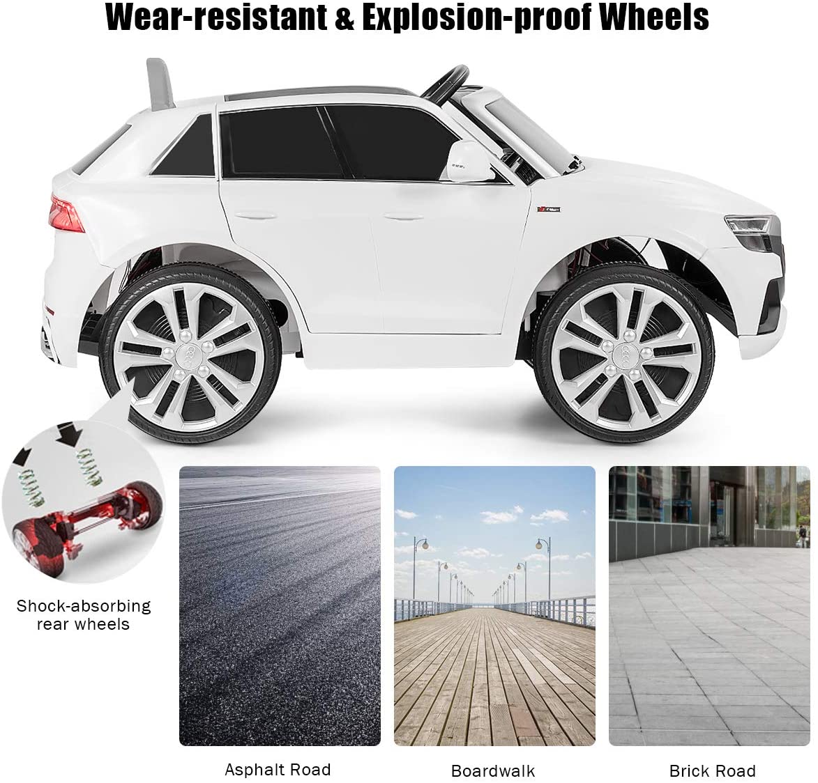 Carro Eléctrico Costzon Ride on Car – Vehículo eléctrico con batería de 12 V con 2 motores, mando a distancia 2,4 G, luces LED, MP3, bocina, música, suspensión de resorte, para niños y niñas (blanco)