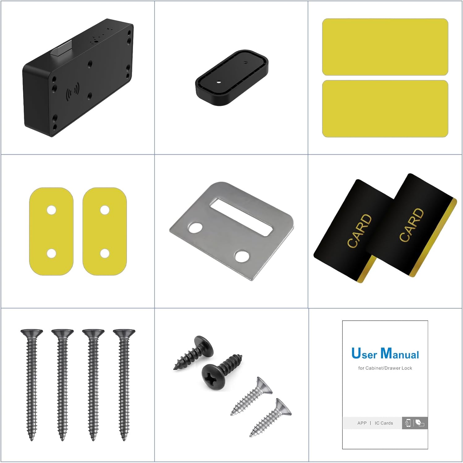 - 📱【Instalación oculta】La cerradura inteligente para armario se instala de forma invisible, sin taladrar ni desmontar, no te preocupes más por el grosor, el diámetro y otras dimensiones. Esto conserva la apariencia original del cajón y lo hace más hermoso.