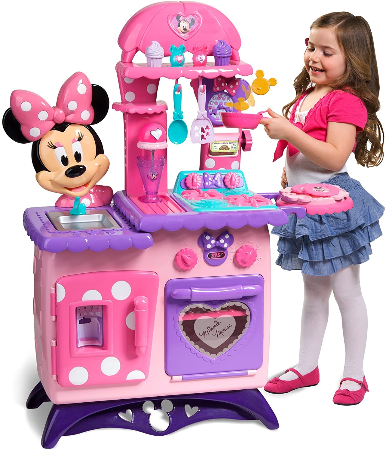 - Se incluyen más de diez adorables accesorios de cocina inspirados en Minnie para tu pequeño chef.