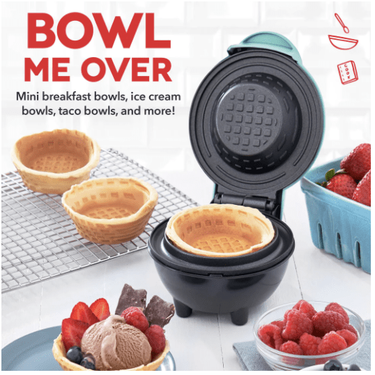 - Más que cuencos para gofras: el mini cuenco para gofres de Dash creará un cuenco casero, mientras que también convierte tu tortilla en un crujiente para un delicioso giro en tu taco tradicional, mientras mantiene el desayuno emocionante y el postre extraordinario.