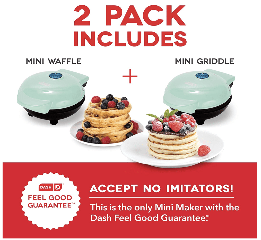 DASH Mini Maker waflera + plancha, paquete de 2 planchas + plancha de gofre, color aguamarina