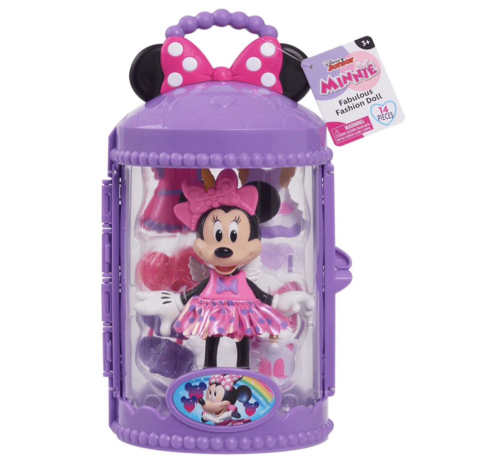 - La muñeca Minnie Mouse Fabulous Fashion Doll de Disney Junior viene con una práctica funda de transporte para que tu pequeña creadora de tendencias pueda llevar a Minnie Mouse con ella dondequiera que vaya.