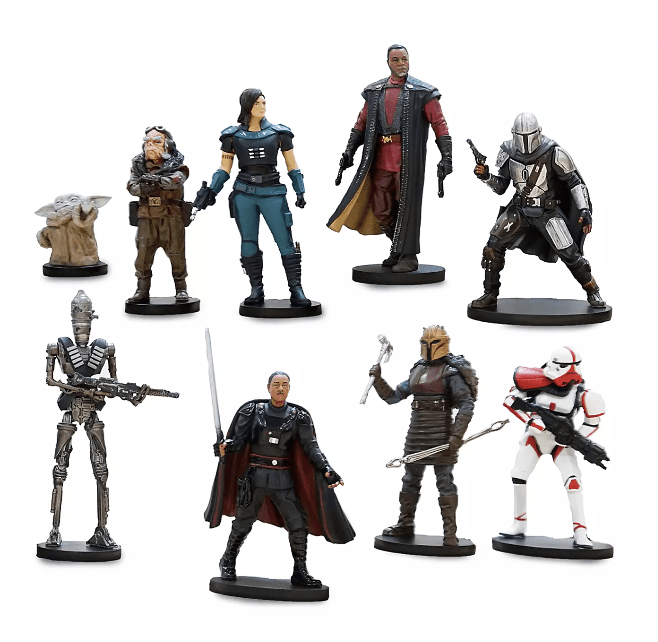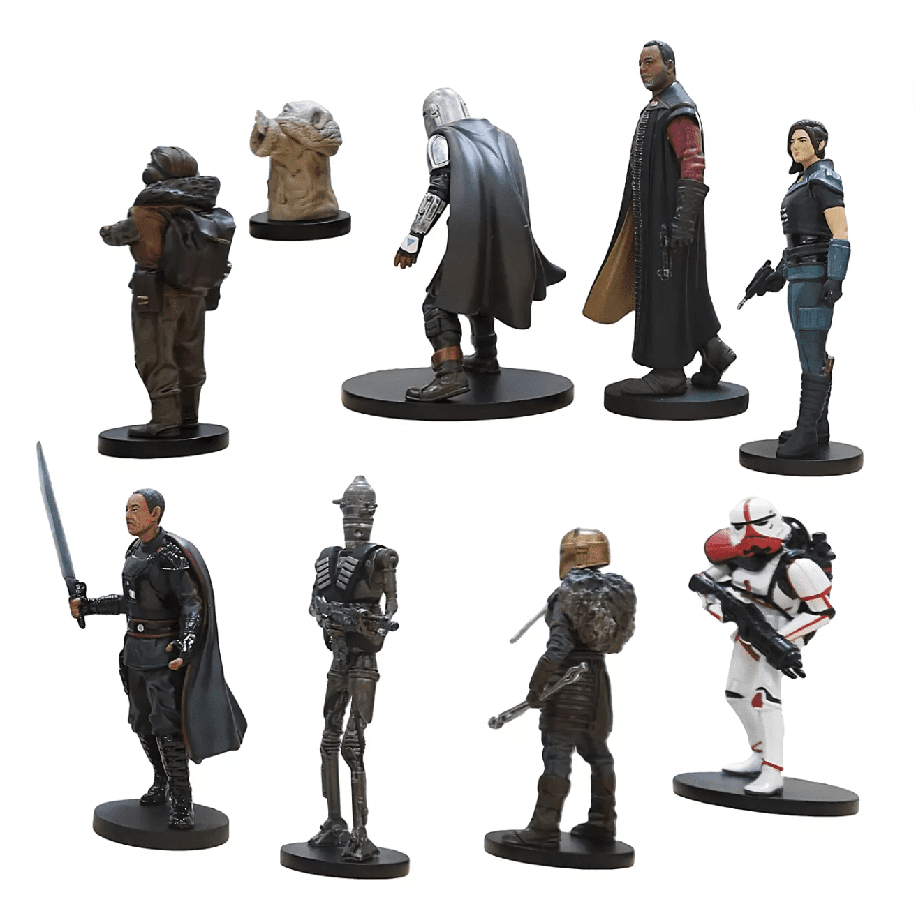 • Nueve figuras completamente esculpidas Incluye The Mandalorian, the Child, Cara Dune, Kuill, IG-11, Greef Carga, Moff Gideon, The Blacksmith y Incinerator Stormtrooper De pie Inspirado en la transmisión de Star Wars: The Mandalorian en Disney