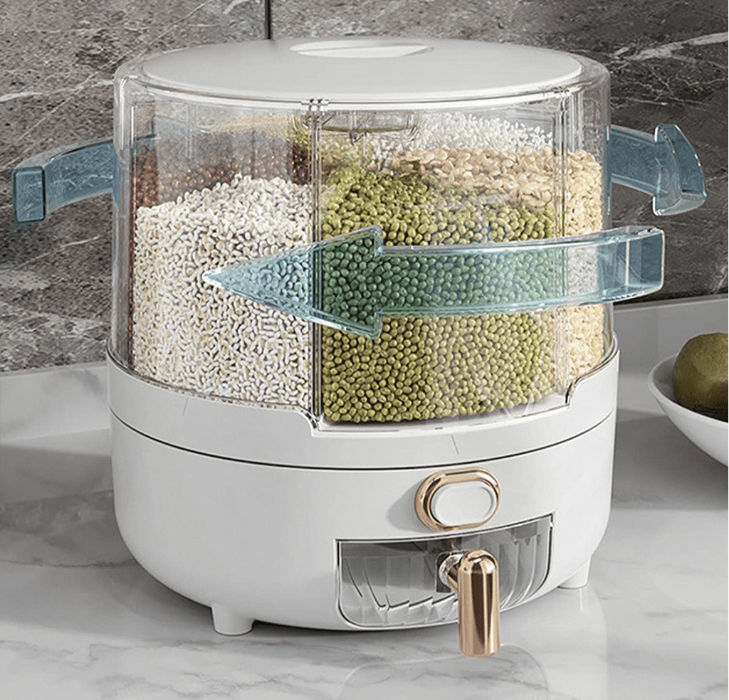 - Rotación de 360°: dispensador de granos multifuncional, soporta rotación de 360 grados, puede sacar fácilmente la comida que necesitas, conveniente y práctico.