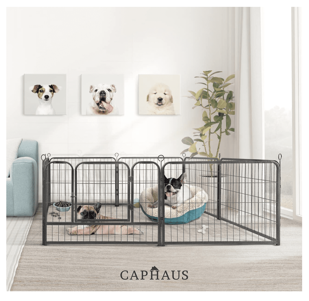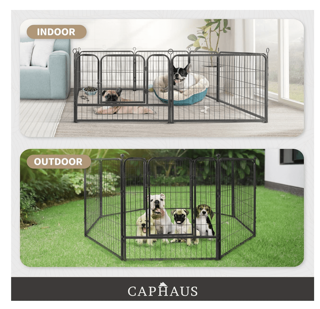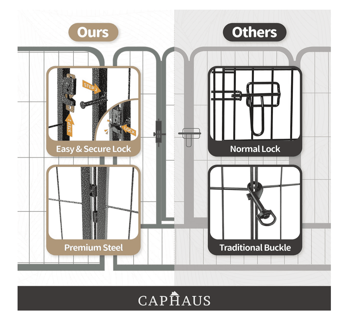 • ? Estructura duradera, resistente y segura: este parque está fabricado con material de hierro de alta calidad, viene con cierres automáticos de puerta y gravedad que aumentan la seguridad con bordes atrevidos. Las estacas están diseñadas con puntas redondeadas para proteger a la mascota de lesiones. Construye un lugar seguro para que las mascotas jueguen y descansen, mantenlas alejadas del peligro al aire libre y ensucien la habitación.
