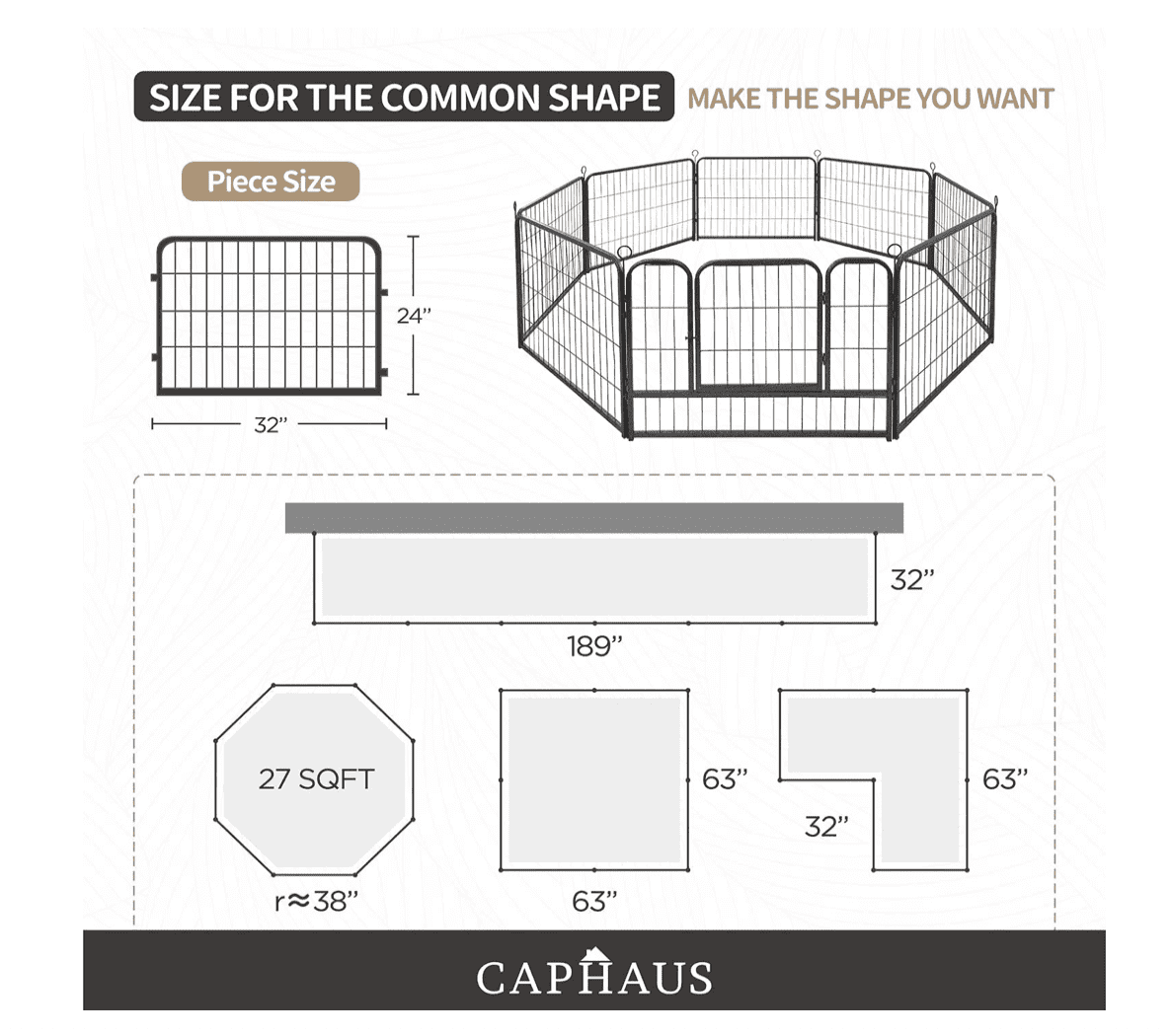 • Fácil montaje en múltiples configuraciones: el diseño del corralito permite varias configuraciones de forma para lugares pequeños o cubrir una gran zona para satisfacer tus necesidades, como la forma de rectángulo, triángulo u octágono con diferentes piezas. Se puede montar y plegar en pocos minutos, lo que la convierte en una valla portátil ideal para viajes, entrenamiento de orinal o uso en el patio. Ideal para perros, conejos, patos, tortugas y cobayas y otros animales.