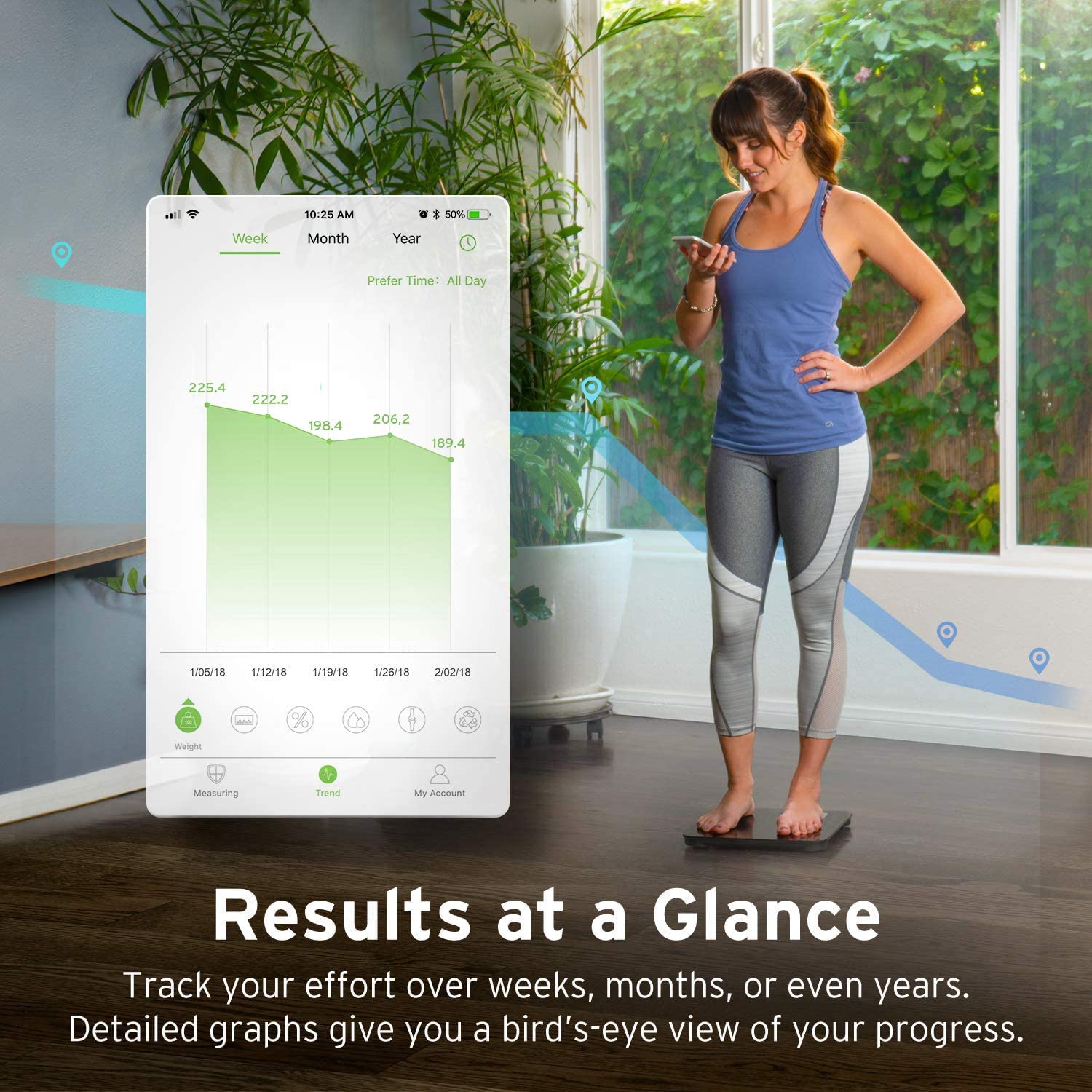 - Alta precisión: 4 sensores con la última tecnología ofrecen medidas precisas de peso de hasta 400 lbs en incrementos de 0.2 lbs. Báscula con Bluetooth con plataforma de cristal templado de 6mm, disfruta de la tecnología de paso a paso y la calibración automática, 3 pilas AAA incluidas. Cambia fácilmente las unidades de peso a través de la aplicación (lb/kg/st).