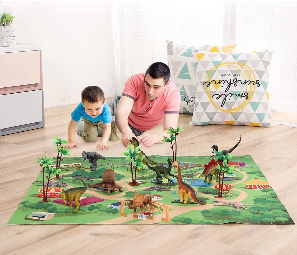 Figura de Dinosaurio TEMI con alfombra de juego y árboles, juego de dinosaurios educativo realista para crear un mundo de dinosaurios incluyendo T-Rex, triceratops, velociraptor, regalos perfectos para niños, niños y niñas