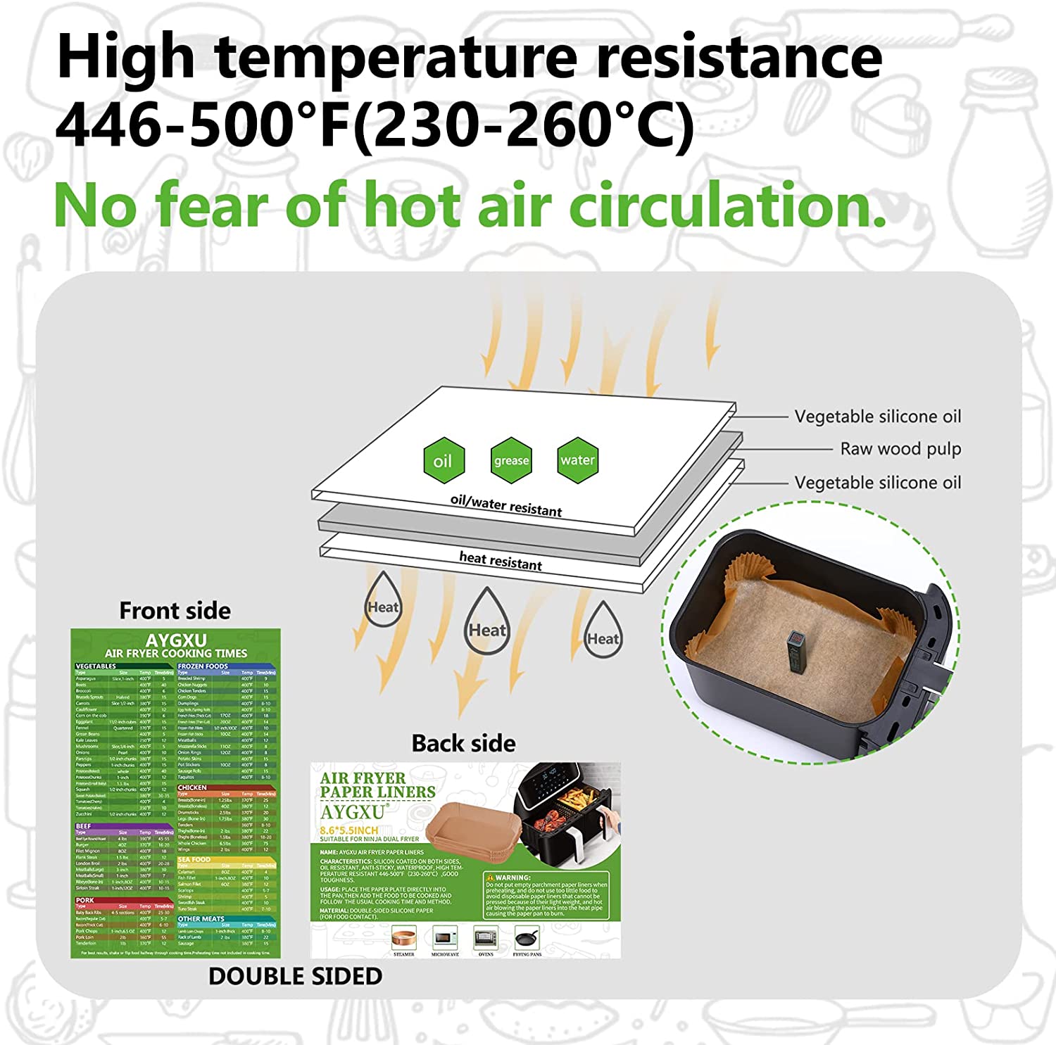 - ?【Material de alta calidad】Hecho de papel de pergamino de grado alimenticio, impermeable, a prueba de aceite, antiadherente, aceite de silicona vegetal puro 100% saludable, con buena resistencia al calor, puede soportar 446-500 °F.