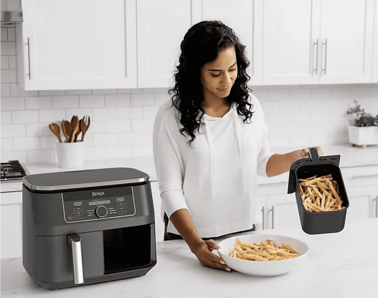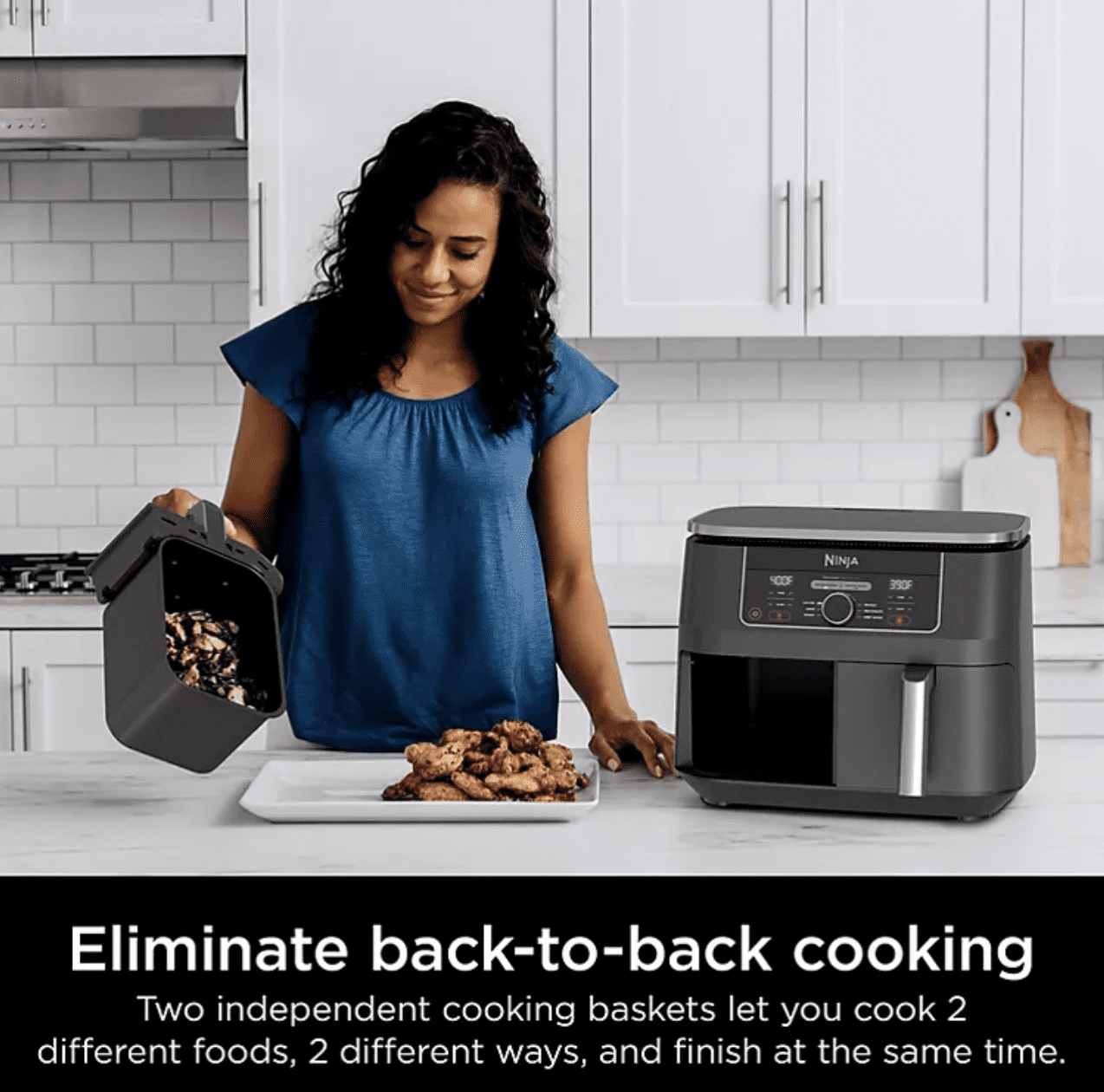 Freidora de aire de 2 cestas 6 en 1 con tecnología DualZone Ninja DZ201, capacidad de 8 cuartos y un acabado de acero inoxidable gris oscuro
