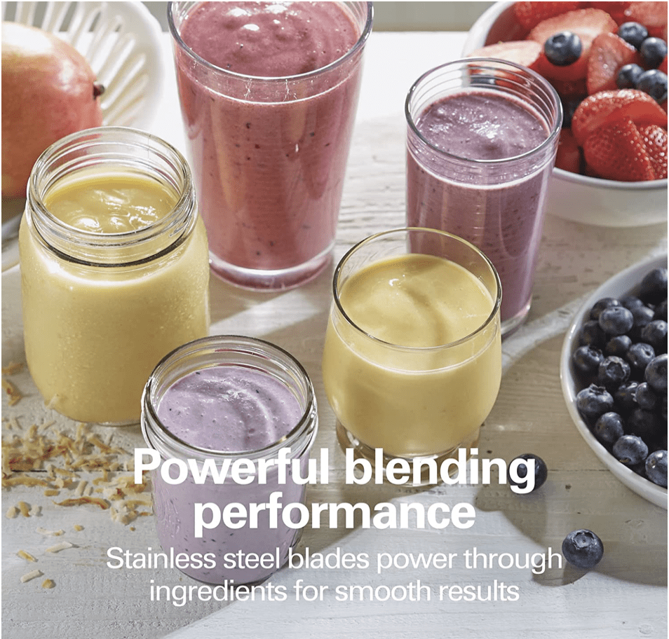 - Potente rendimiento de mezcla: cuchillas de acero inoxidable duraderas en la licuadora portátil a través de hielo, frutas congeladas y verduras de hojas para resultados suaves. Perfecto para añadir más vitaminas y nutrientes a tu dieta en batidos y batidos de proteínas.
