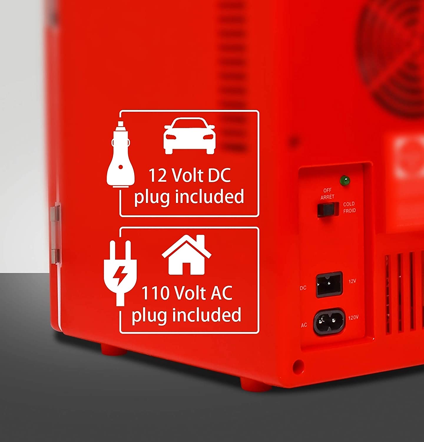 - Ligero, compacto y portátil para el cuidado de la piel: mini nevera perfecta para el dormitorio; 12 voltios CC y 110 voltios AC, incluye enchufes.