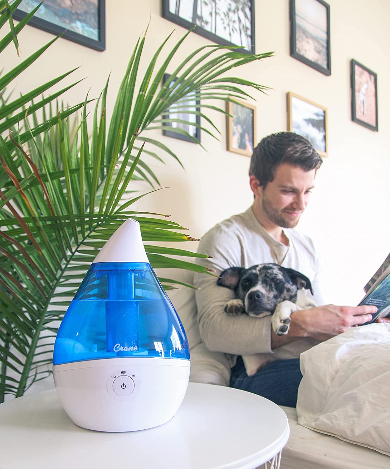 - Humidificador de habitación pequeña a mediana: el humidificador ultrasónico Crane Droplet cuenta con un tanque desmontable fácil de limpiar que contiene medio galón de agua, perfecto para humidificar espacios interiores de hasta 250 pies cuadrados durante 15 horas.