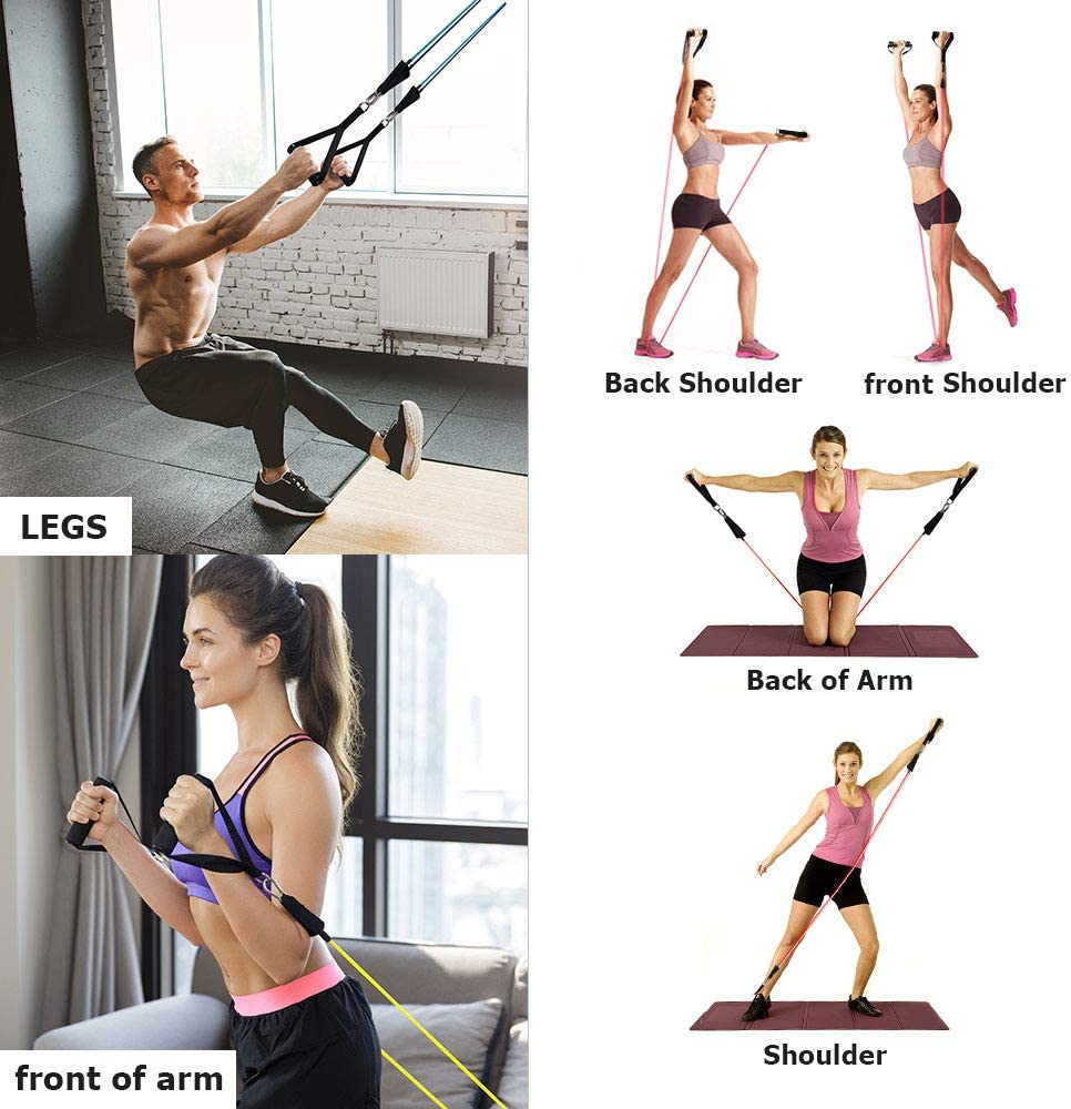 - Accesorios versátiles: nuestras bandas de resistencia te proporcionan múltiples formas de entrenar tu cuerpo, y también vienen con asas acolchadas, correas de tobillo y un anclaje de puerta.