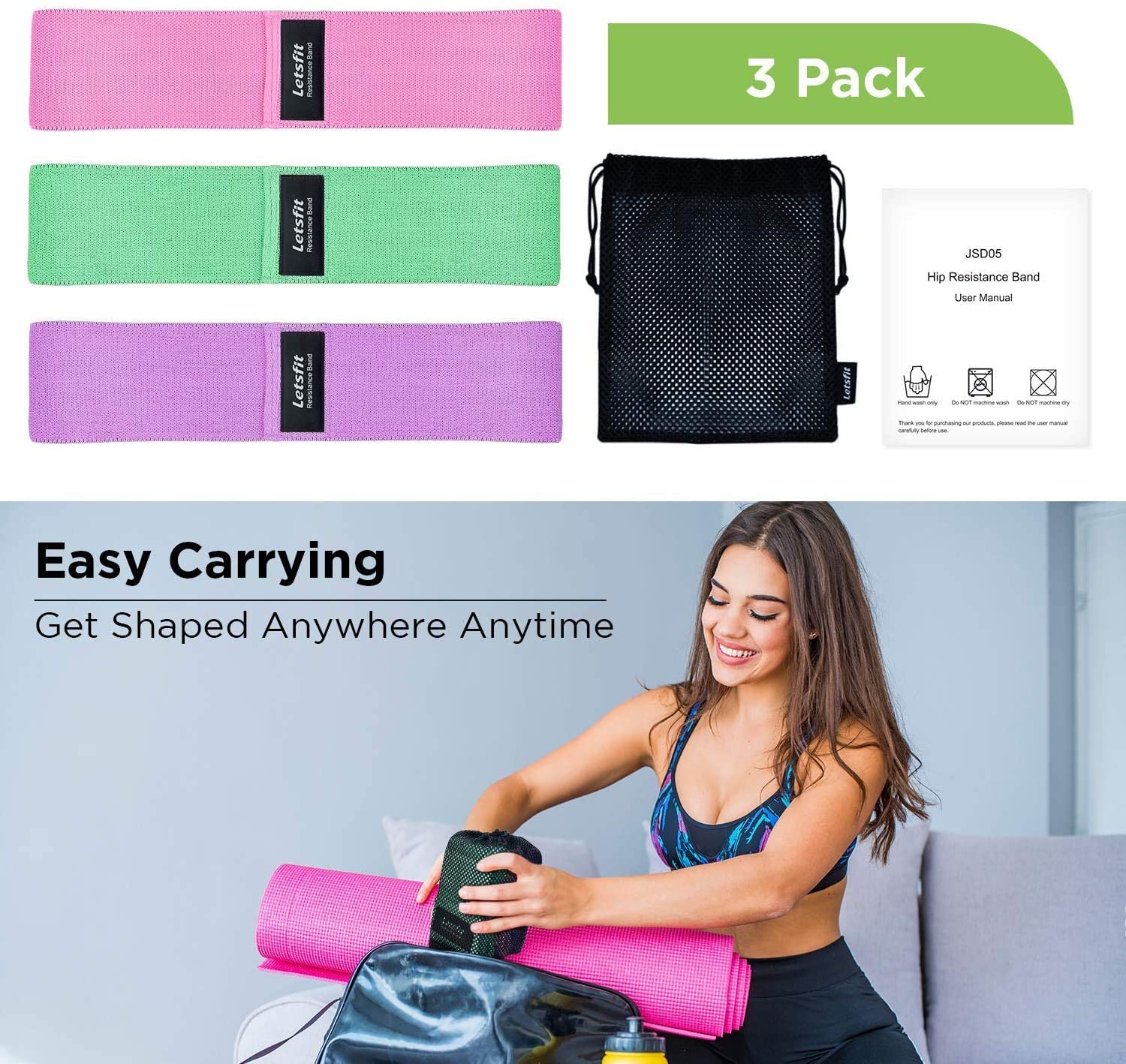 - Multiusos y portátil: las bandas de cadera son ideales para ayudar en yoga, pilates, entrenamientos de cuerpo de playa y posparto. Puedes hacer ejercicio en cualquier lugar gracias a la bolsa de transporte incluida. Perfecto para usar en el gimnasio, al aire libre o en casa.