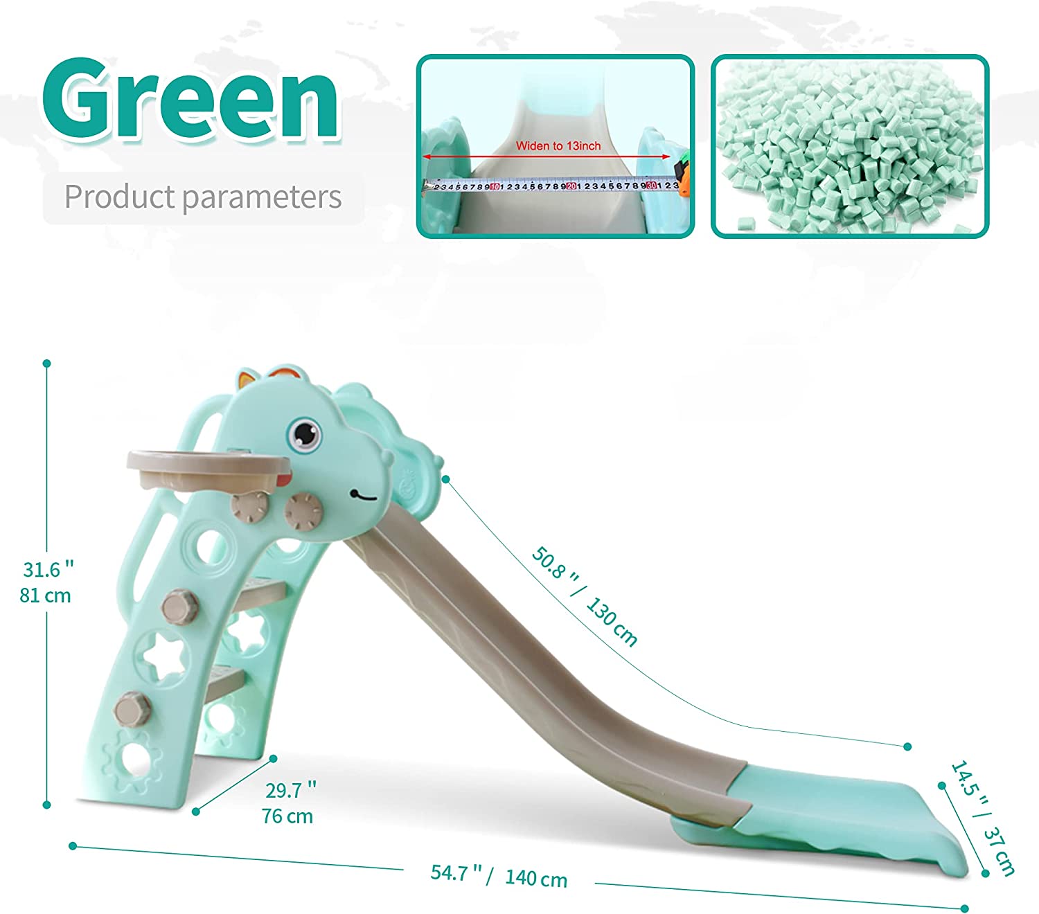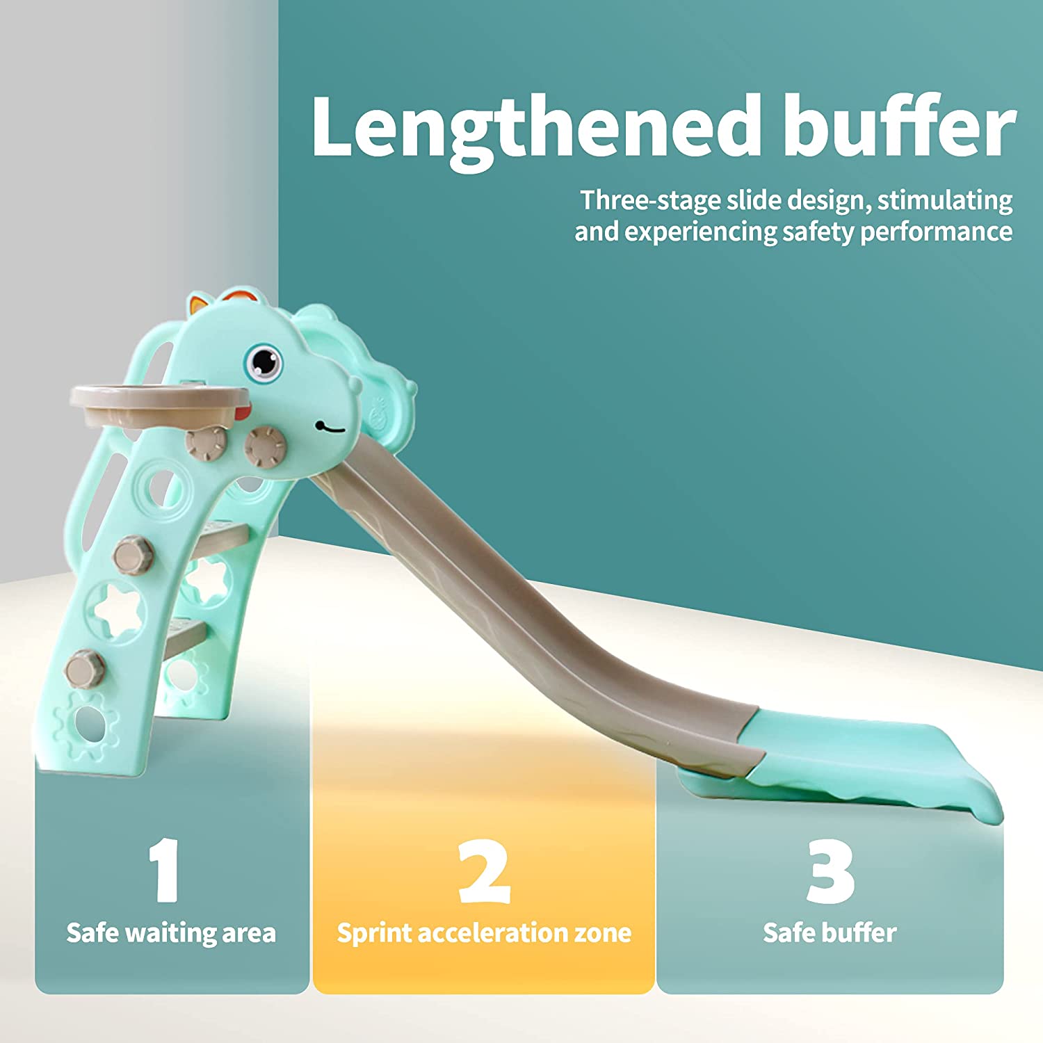 - [Diapositiva funcional para niños] El juego de diapositivas para niños, juega varias funciones: pedal antideslizante, aro grueso; pasamanos de seguridad; deslizamiento grueso; amortiguador ampliado.