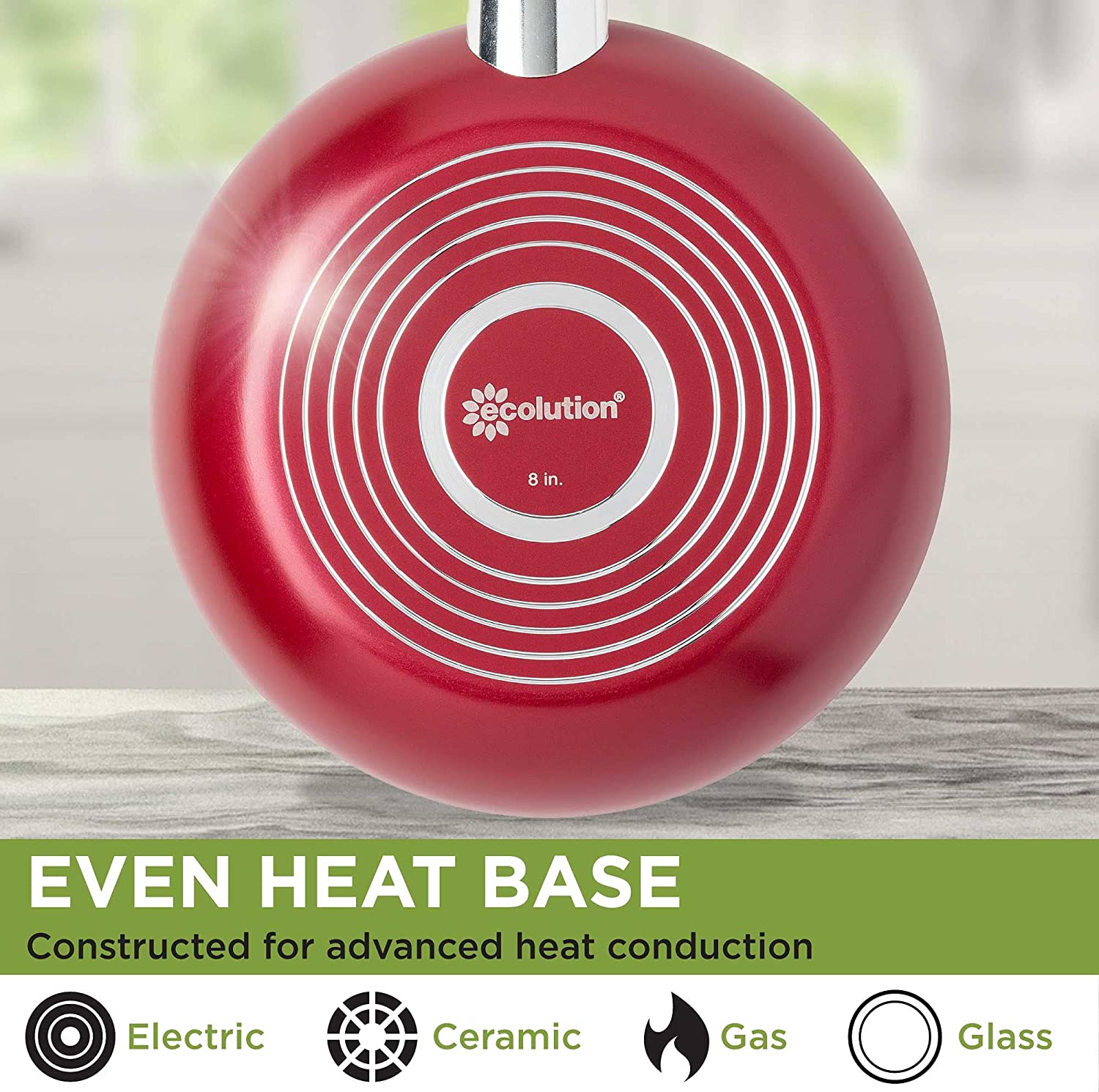 Juego de utensilios de cocina antiadherentes de fácil limpieza, -Ecolution- juego de ollas y sartenes de cocina aptos para lavavajillas, mango de agarre cómodo, calentamiento uniforme, liberación definitiva de alimentos, 12 piezas, rojo