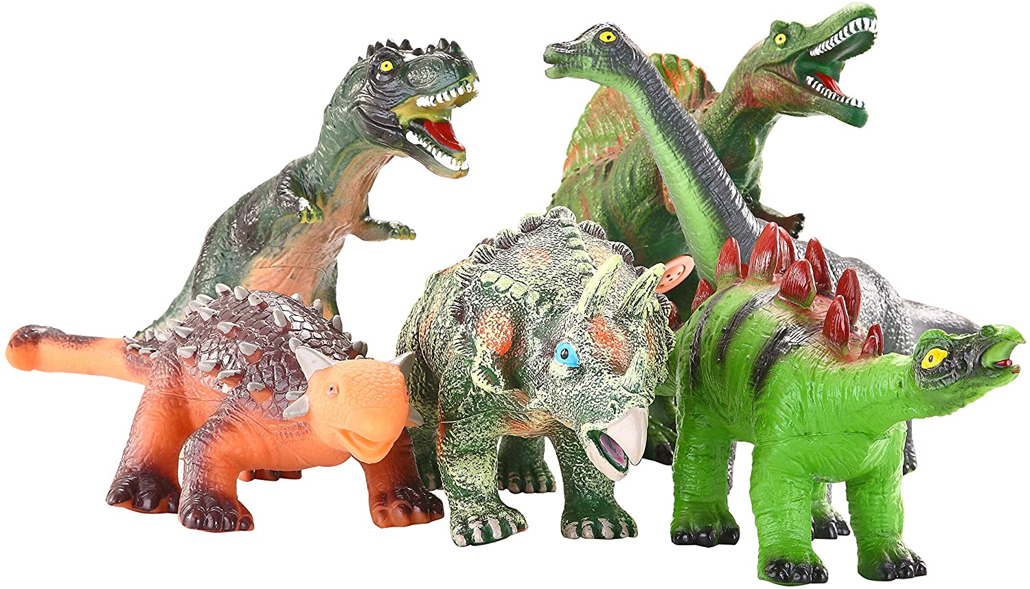 Juguete Dinosaurio Joyin 6 figuras con sonido – realistas educativas de 12 a 14 pulgadas con folleto de dinosaurios