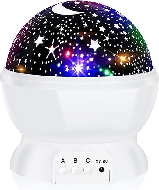 - 9 efectos de iluminación: la luz nocturna de estrella contiene 9 efectos de iluminación: 4 piezas de cuentas LED con amarillo cálido, azul, rojo, verde y multicolor que proporcionan 9 modos únicos de operación de luz. Girando su base sin ningún ruido, habrá diferentes espacios coloridos, encuentra la constelación de la que le perteneces.