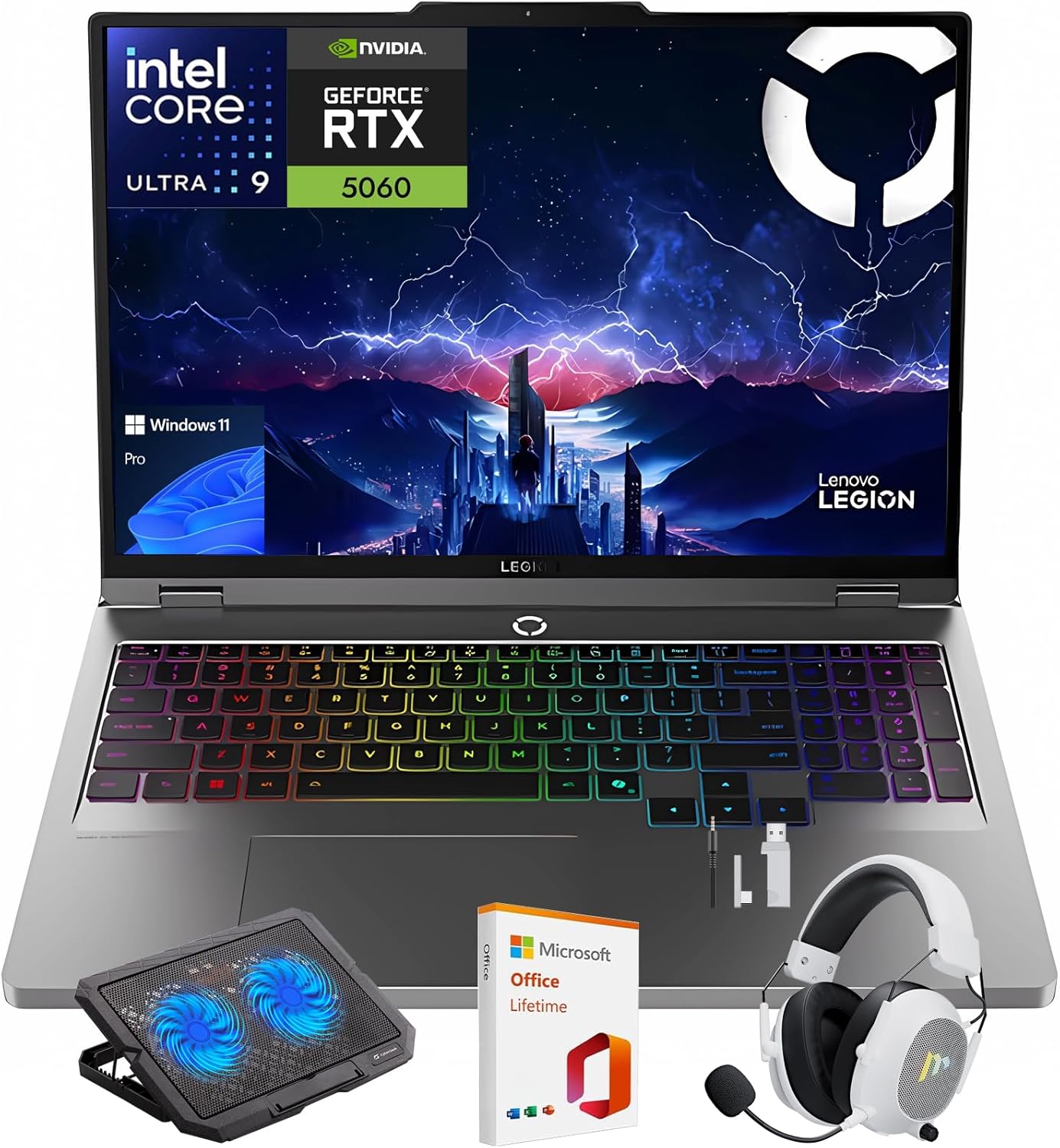 Laptop Lenovo Legion 5i – para juegos de 16 pulgadas, pantalla WQXGA 240Hz, Intel Core Ultra 9-275HX, NVIDIA GeForce RTX 5060, 32 GB DDR5 RAM, 1 TB SSD, Wi-Fi 7, retroiluminación RGB, Win 11 Pro, con accesorios Mytrix para oficina de por vida