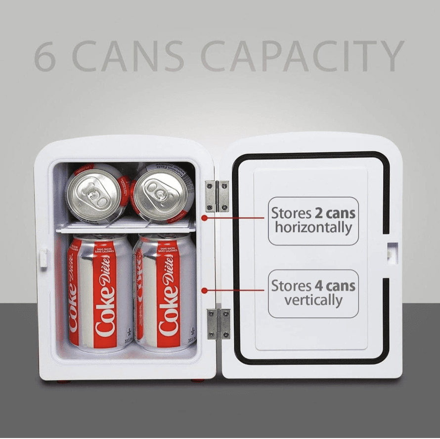 - The One and Only Diet Coke: Esta mini nevera única presenta el icónico logotipo de Diet Coke en llamativo rojo sobre un elegante fondo gris