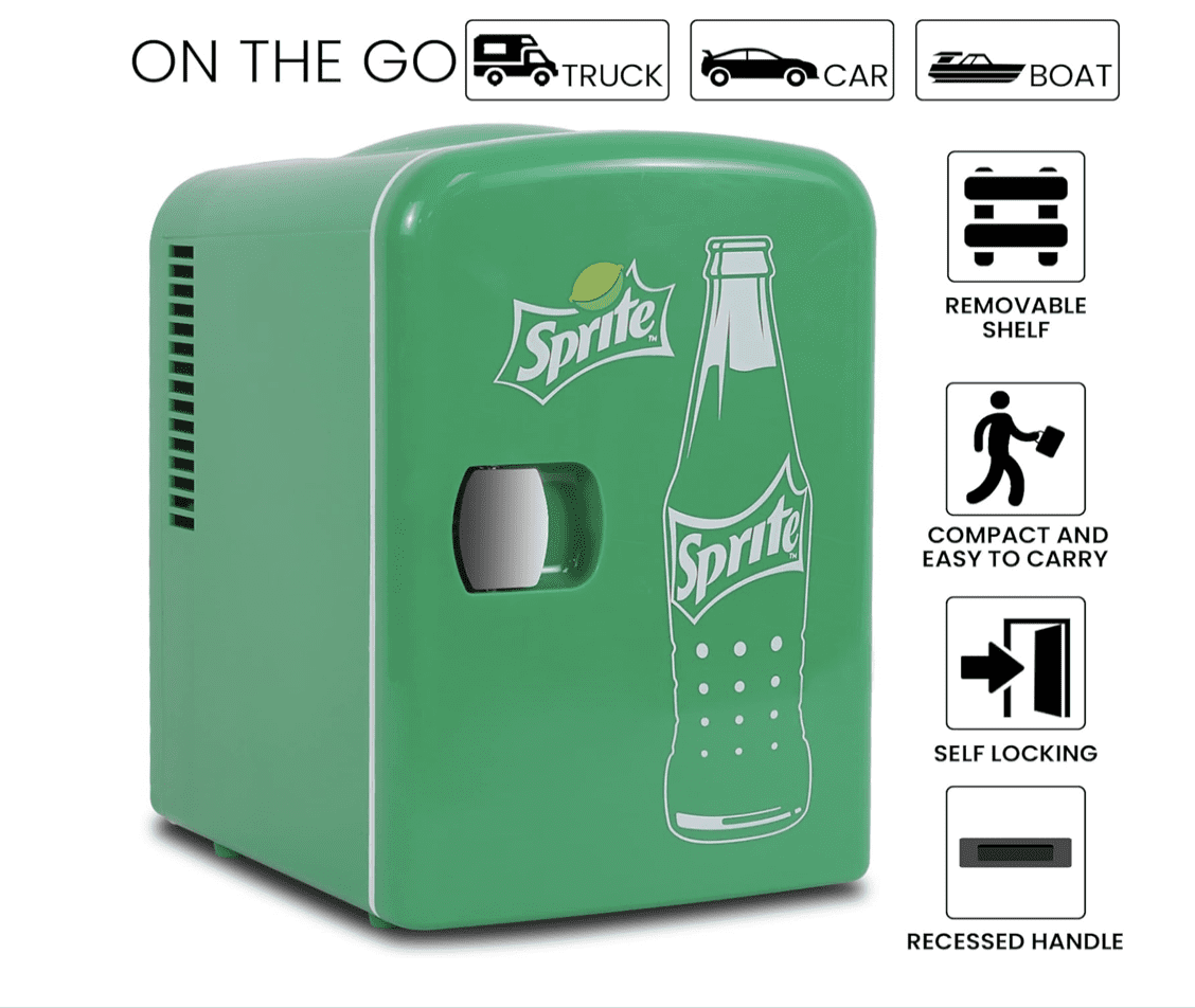 - Elegantes gráficos de lima limón: con el logotipo oficial de Sprite, este enfriador portátil único es un complemento perfecto para cualquier colección de Coca-Cola