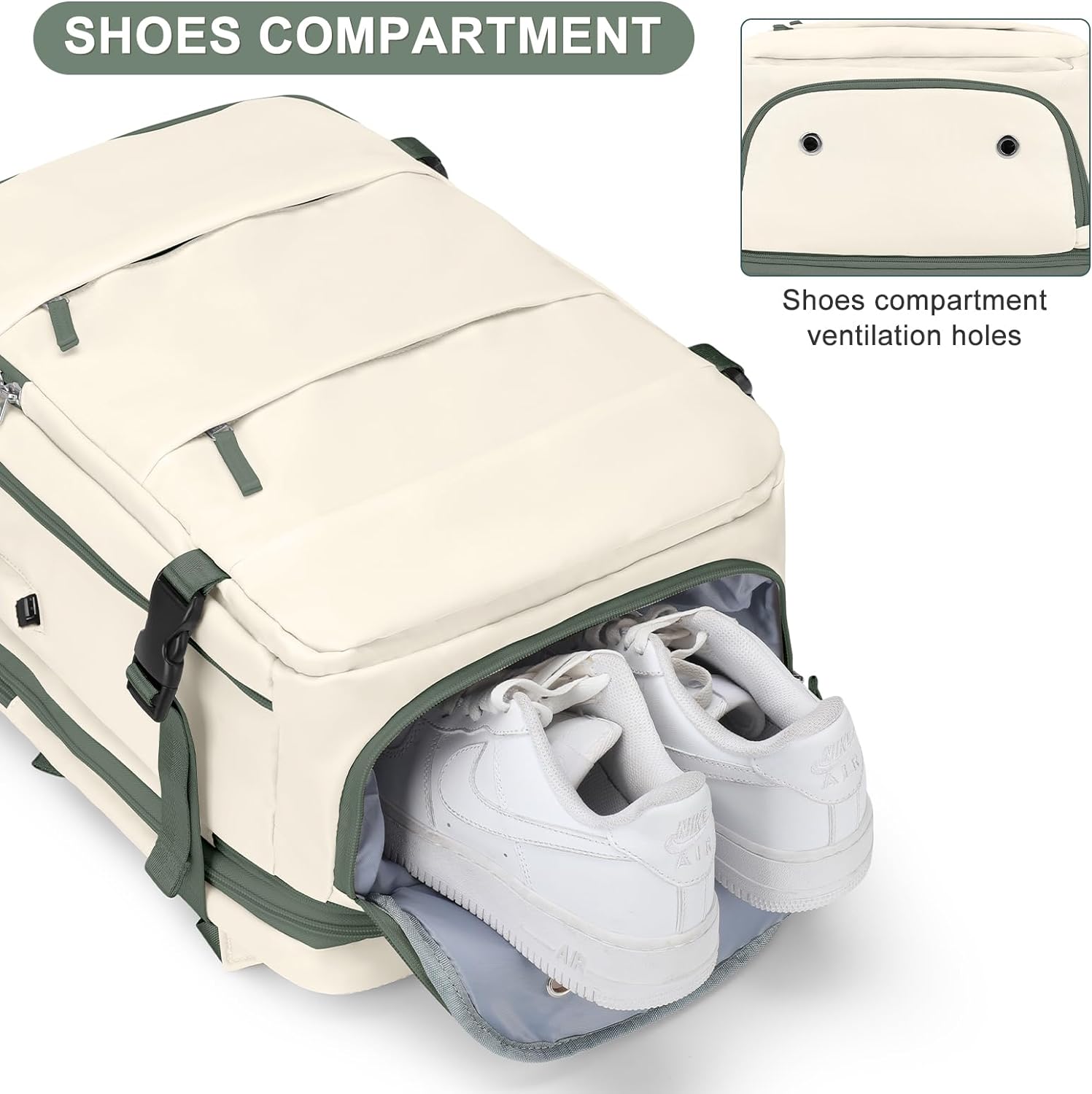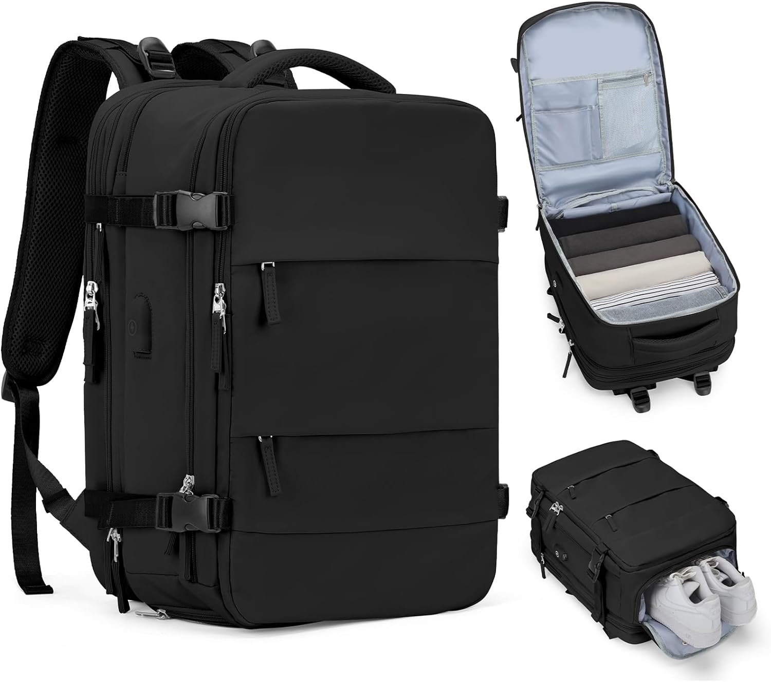 - Aprobado por la mayoría de los vuelos: las dimensiones externas son 18.5 x 12.6 x 8.6 pulgadas (alto x ancho x profundidad), 2.8 libras de peso (medición manual, solo para referencia, sujeto a la medición real). Esta mochila cumple con los requisitos de embarque y se puede abrir y plegar 180 grados como una maleta, que puede pasar rápidamente a través de la seguridad del aeropuerto y está especialmente diseñada para viajes en avión.