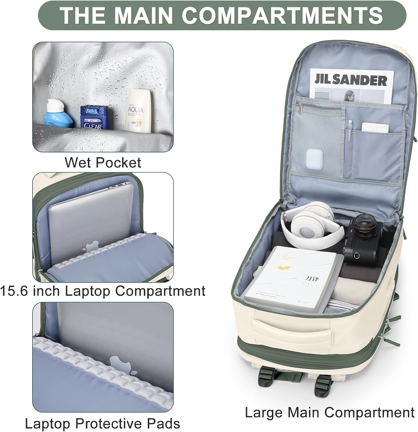 - Comodidad y seguridad: cómodo diseño de flujo de aire en la espalda, acolchado grueso y suave con ventilación multipanel que proporciona apoyo en la espalda. Transpirable, correas de hombro ajustables y una hebilla en el pecho para aliviar la presión del hombro. Esta mochila se puede deslizar en el carrito de la maleta para facilitar el viaje. Bolsillo oculto con cremallera antirrobo en la parte posterior de la mochila para evitar que tus objetos de valor sean robados.