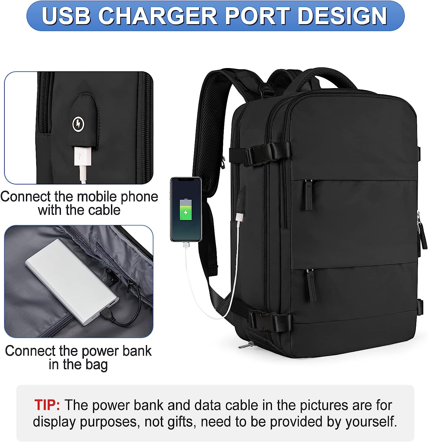 - Diseño de puerto USB: esta mochila tiene un puerto de carga USB, que se puede conectar a un banco de energía dentro de la bolsa, y un teléfono celular conectado al exterior de la bolsa a través de un cable de datos, lo que te permite cargar tu teléfono celular o iPad mientras caminas, reduciendo la carga en tus manos y evitando pérdida de información. Ten en cuenta que la mochila no viene con un banco de energía y cable de datos, es solo para la comodidad de cargar el teléfono celular.