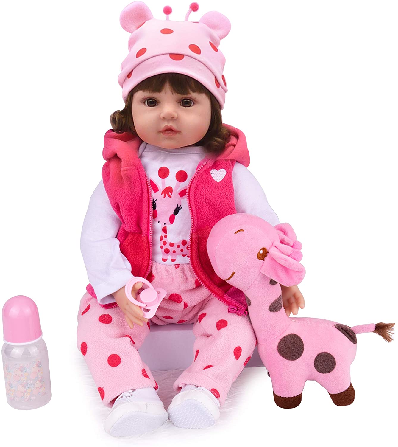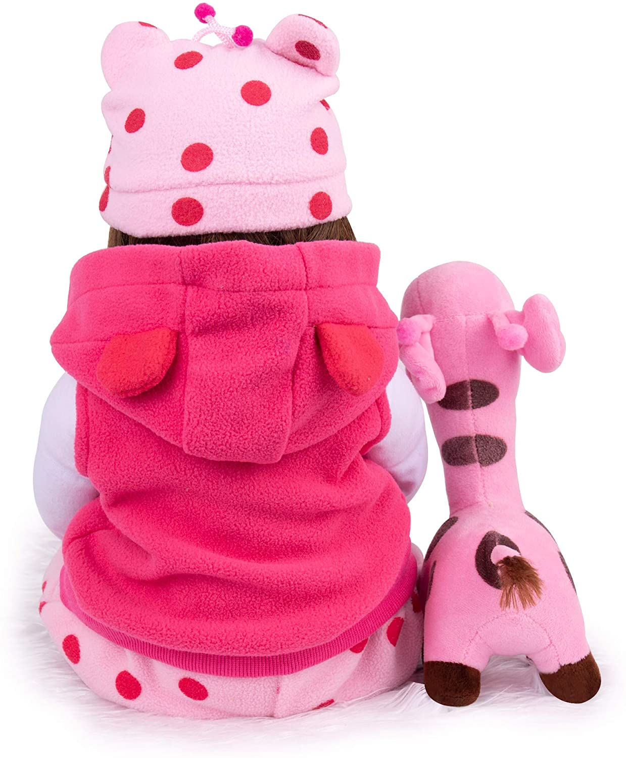 - El paquete incluye muñeca, jirafa, tela, chupete, biberón, certificado de nacimiento, caja de regalo.