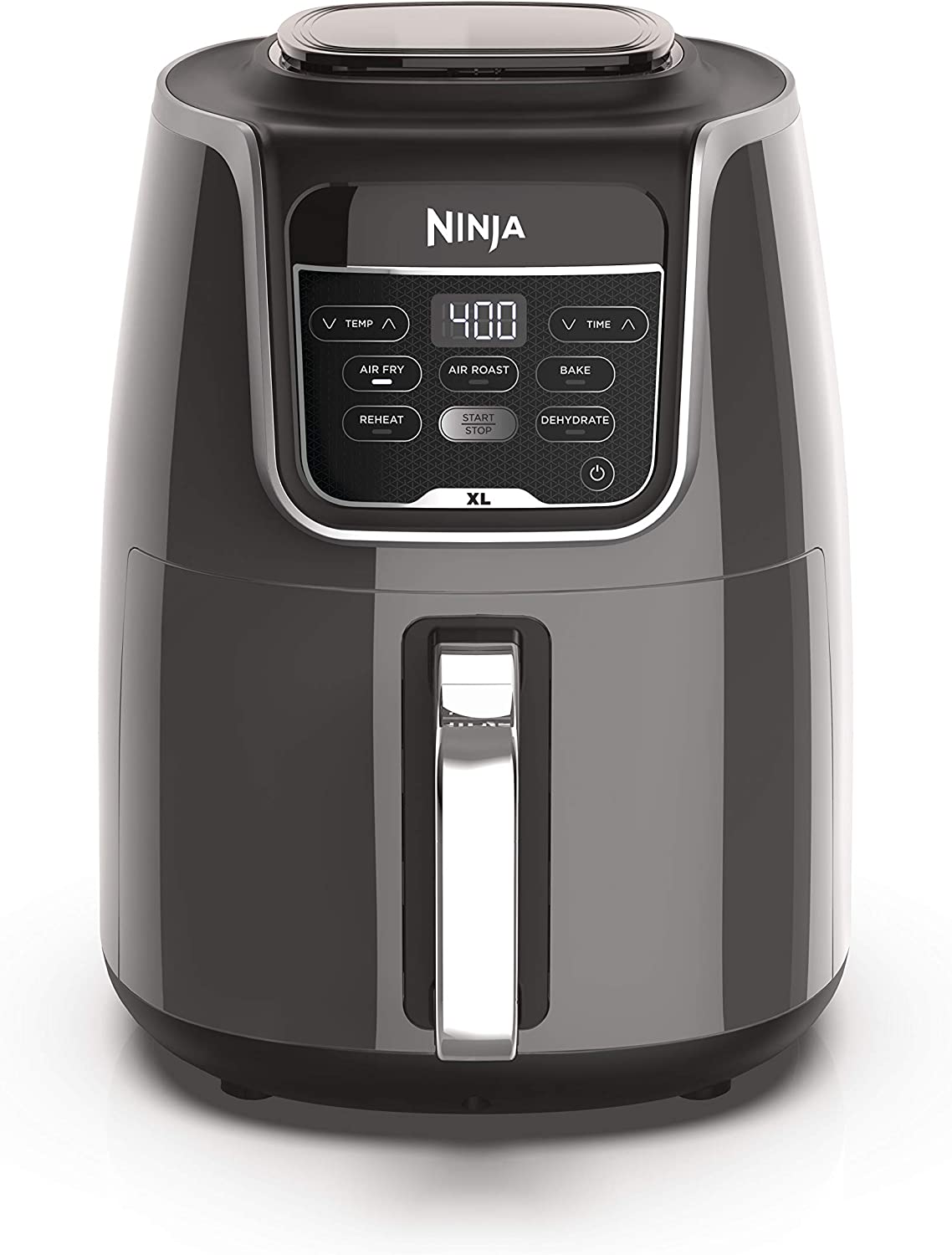 Ninja AF150AMZ – Freidora de aire XL, 5.5 cuartos de galón, capacidad que puede freír al aire, asar al aire, hornear, recalentar y deshidratar, con apto para lavavajillas, cesta antiadherente y plato crujiente y una guía de recetas inspirada en el chef, color gris
