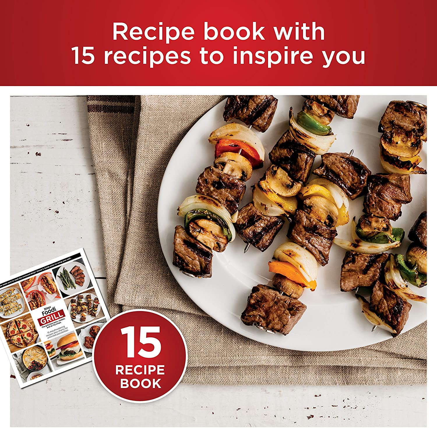 - Qué incluye: parrilla Ninja Foodi, parrilla de parrilla de 10 x 10 pulgadas, 4 cuartos de galón. Cesta crujiente, 6 cuartos de galón. Olla de cocina, libro de 15 recetas y cepillo de limpieza.