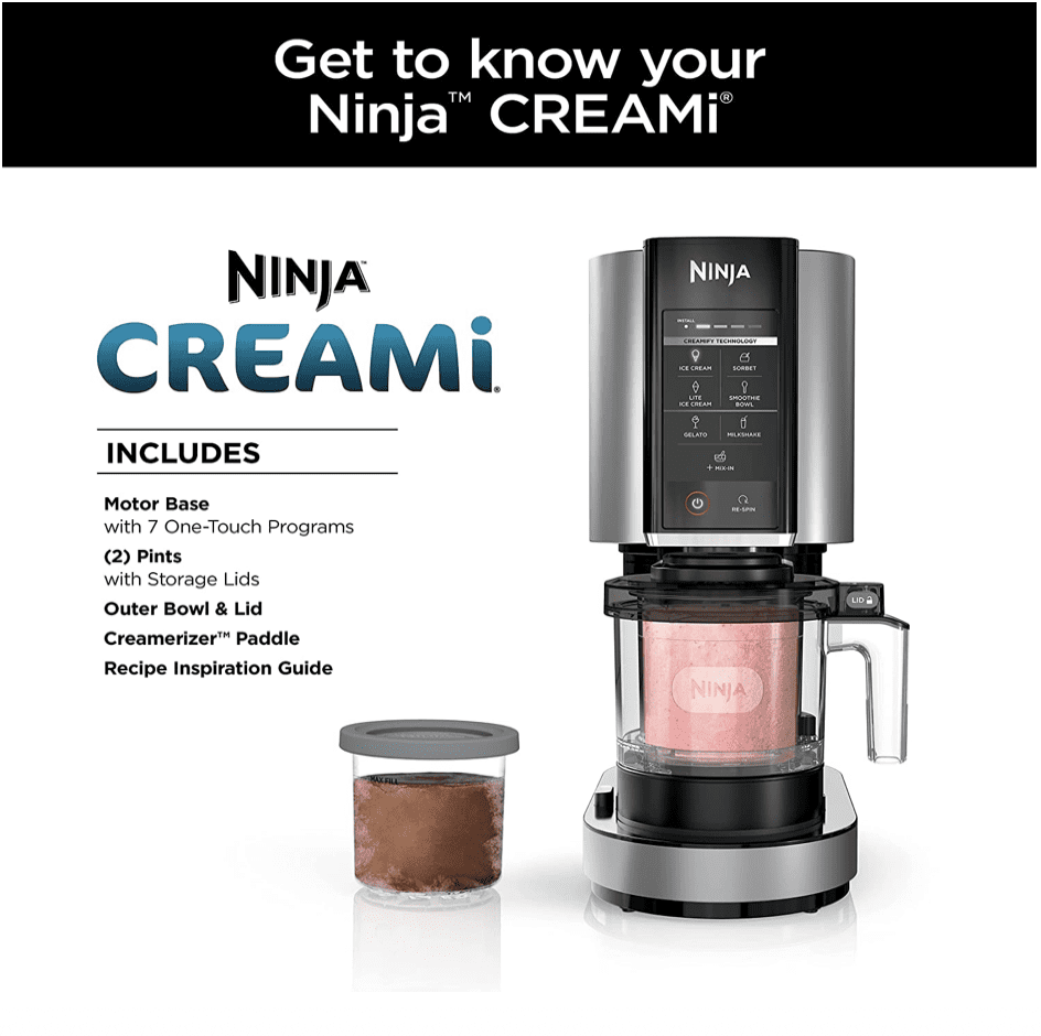 Ninja Creami NC301RD, máquina para hacer helado, gelato, malteada, sorbetes y batidos, 7 programas de un solo toque, plateado