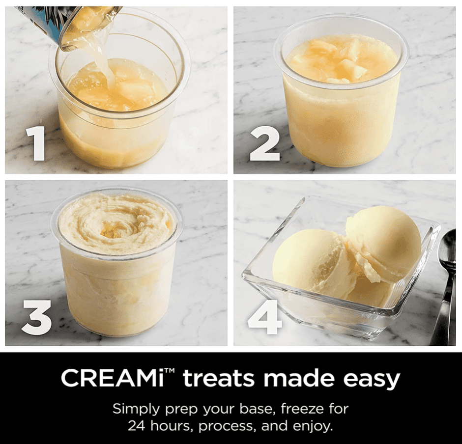 - Crea un platillo Creami en tres sencillos pasos. Simplemente prepara tu base, congela durante la noche, procesa y disfruta