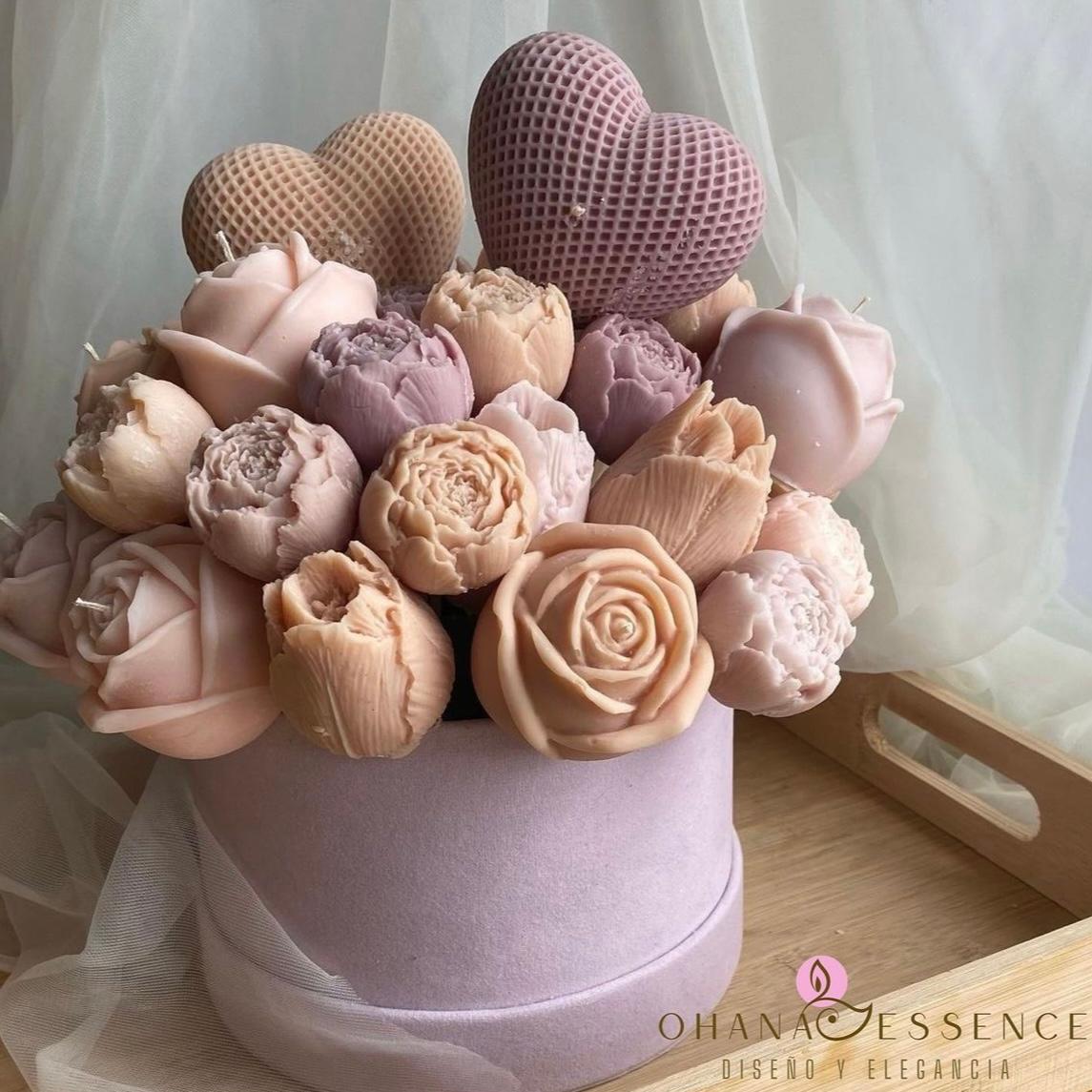 Ohana Essence Candles arreglo floral mediano hecho con velas de soya, con colores de preferencia