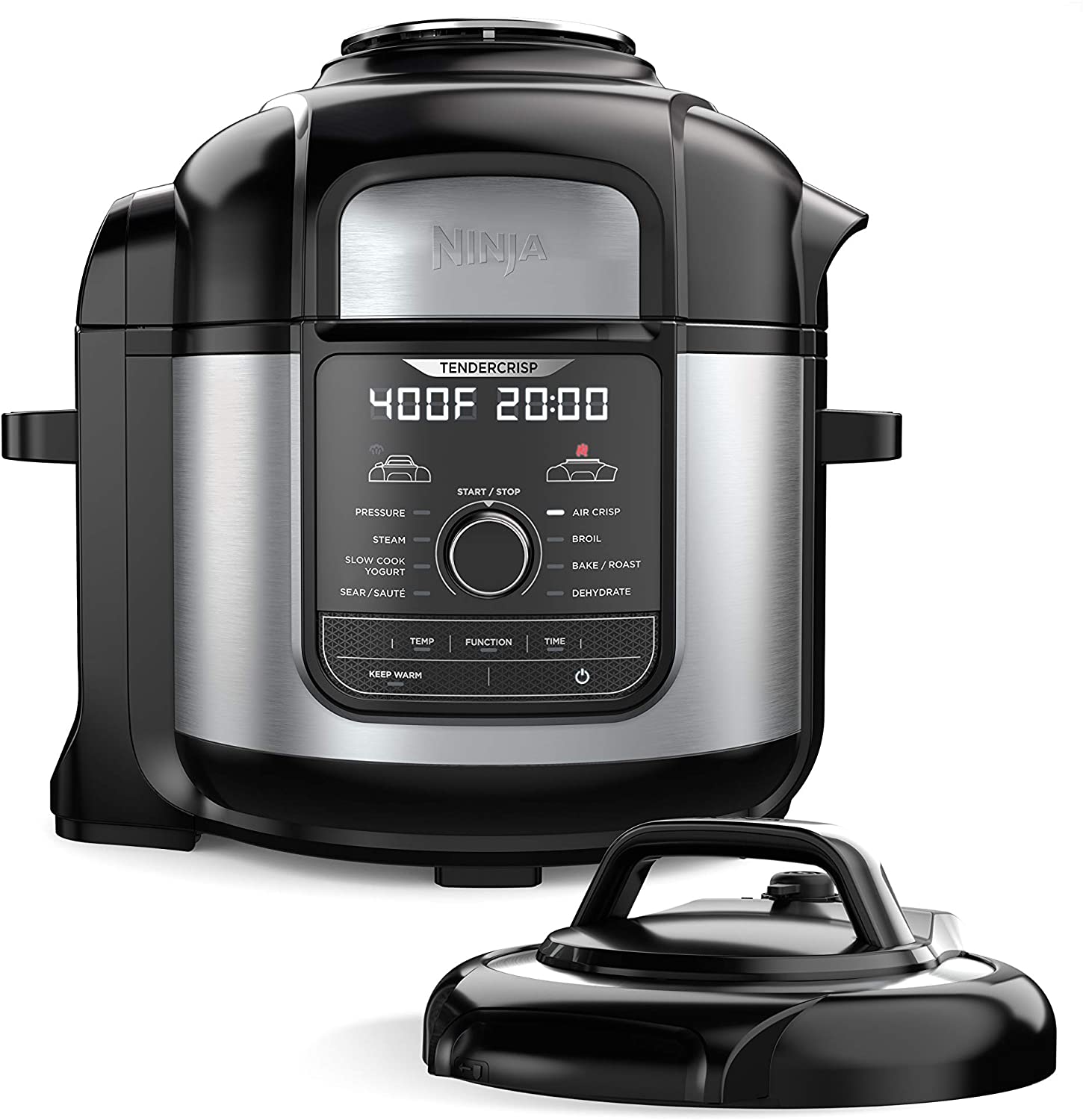 Olla de 5/6.5/8 cuartos de galón Ninja FD401 Foodi – Olla Deluxe XL de acero inoxidable 9 en 1, olla a presión, freidora de aire