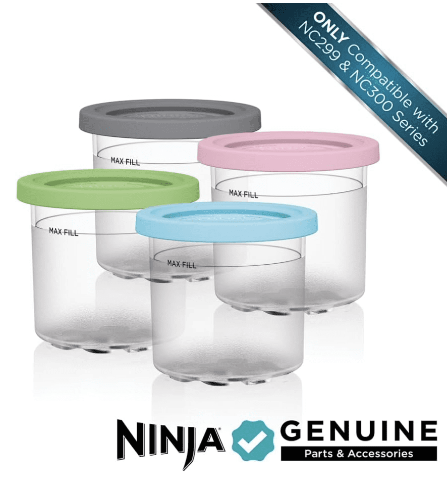 Paquete de 4 unidades, Ninja XSKPLD4BCD – compatibles con máquinas de helado de crema serie NC299AMZ y NC300s, sin BPA y aptas para lavavajillas, tapas de color, 1 pinta cada una, transparente/gris/lima/rosa/acqua
