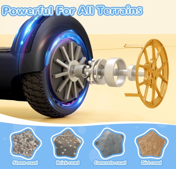 - 【Bluetooth 5.0 y luces LED】Equipado con altavoces Bluetooth 5.0 integrados, lo que te permite conectar tu teléfono inteligente a través de Bluetooth para reproducción de música o libros de audio. Las coloridas luces LED y las ruedas intermitentes iluminan no solo añaden más diversión a tu viaje, sino que también mejoran la visibilidad durante los paseos nocturnos. Las luces indicadoras de estado pueden mostrar el estado en tiempo real de la batería y los scooters.