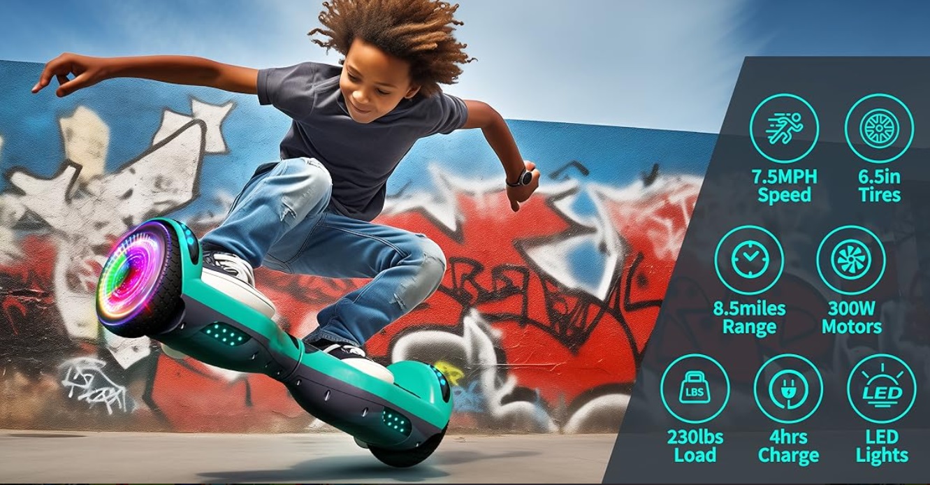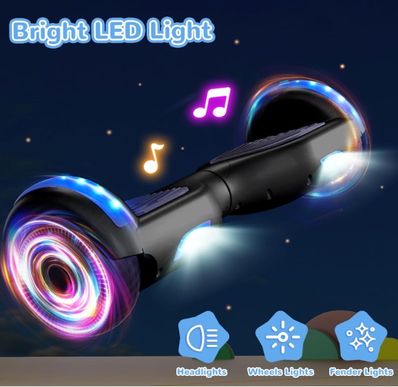 Patineta Hoverboard SISIGAD con Bluetooth, ruedas de 6,5″ con luces LED de colores, para niños y niñas a partir de 6 años.
